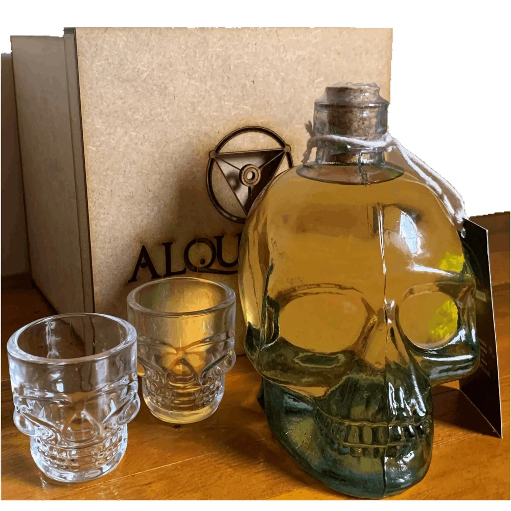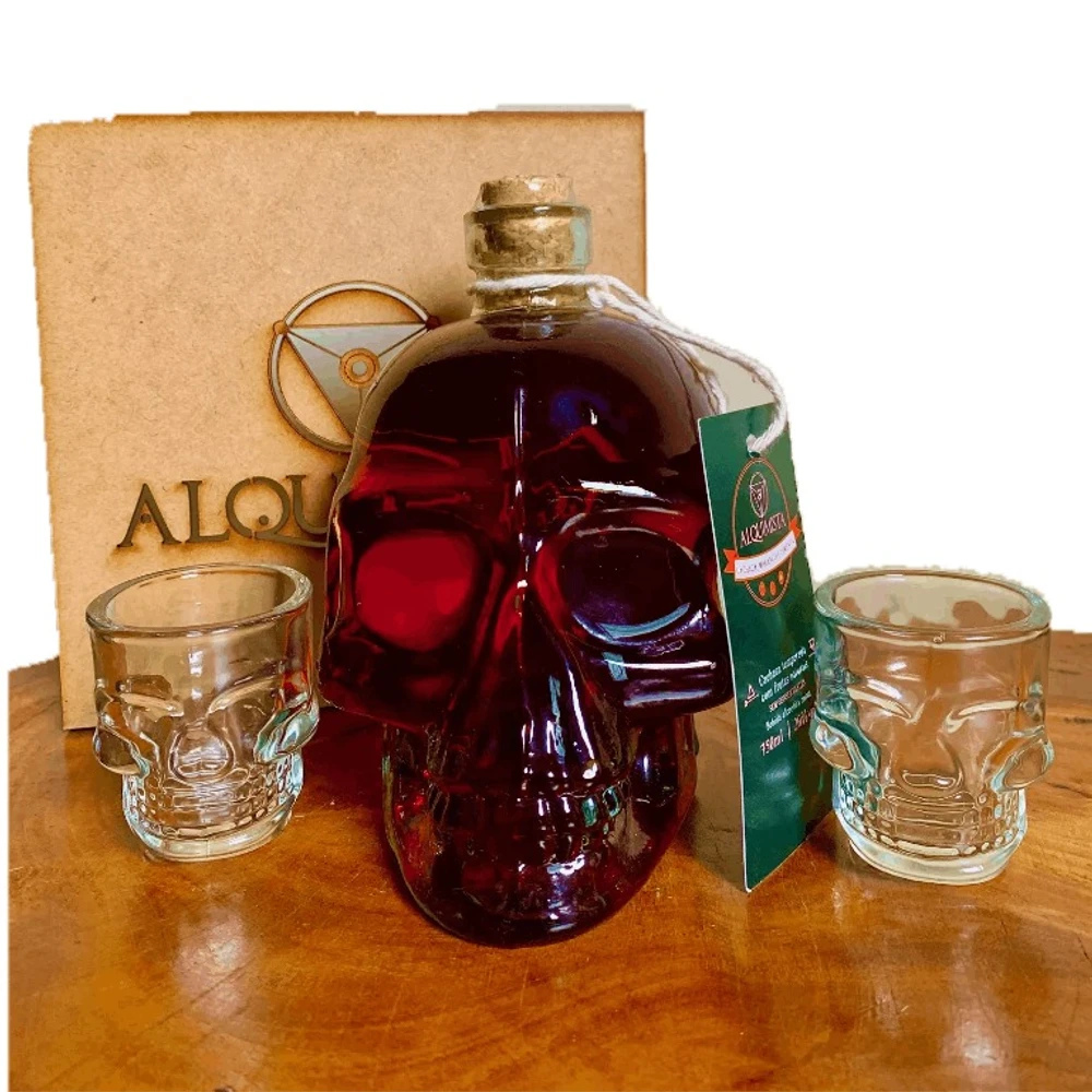 1 garrafa Alquimista (750ml) em formato de caveira – sabor à sua escolha