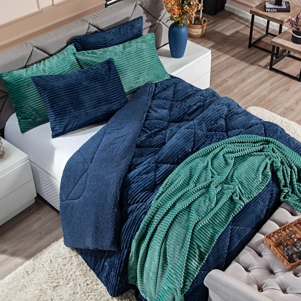 A nova coleção de coberdrons Boston traz toda a sofisticação e aconchego. Por possuírem dupla face, apresentam superfície que valoriza ainda mais as cores! Confeccionado em pantográfica computadorizada com lindos desenhos geométricos. Novidade e tendência para o inverno desse ano, o coberdrom é composto de Manta Canelada Microfibra em um lado e no outro em Sherpa Colorida, com aquele toque de lã de carneiro que conforta e aquece nas noites mais frias. Composição feita em poliéster com 150gr de enchimento, maravilhoso, sofisticado e extremamente macio, perfeito para aquecer, acompanhando também os dois porta-travesseiros canelados com Zíper. Ideal para decorar, trazer conforto e tornar o quarto ainda mais convidativo e elegante! Confira!
