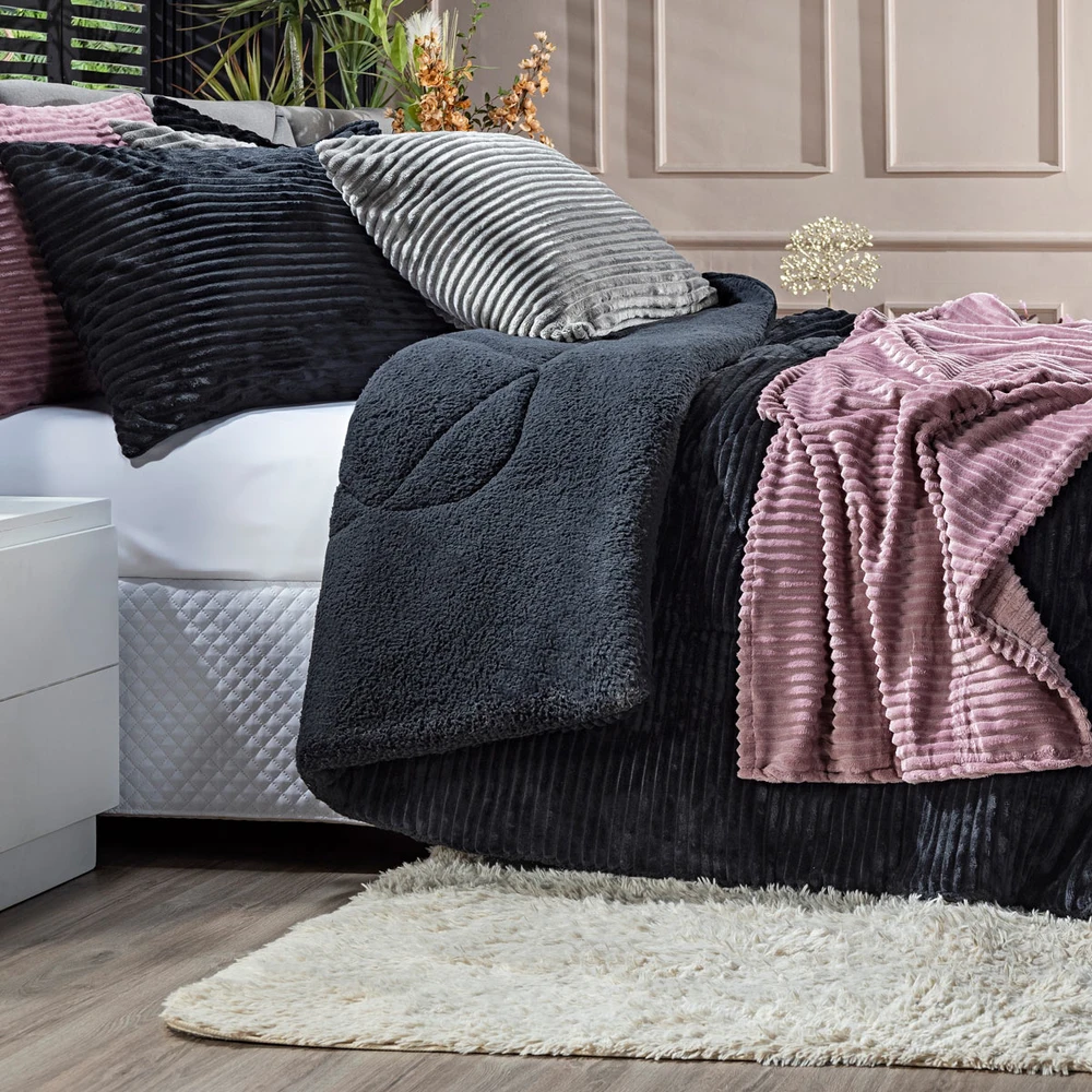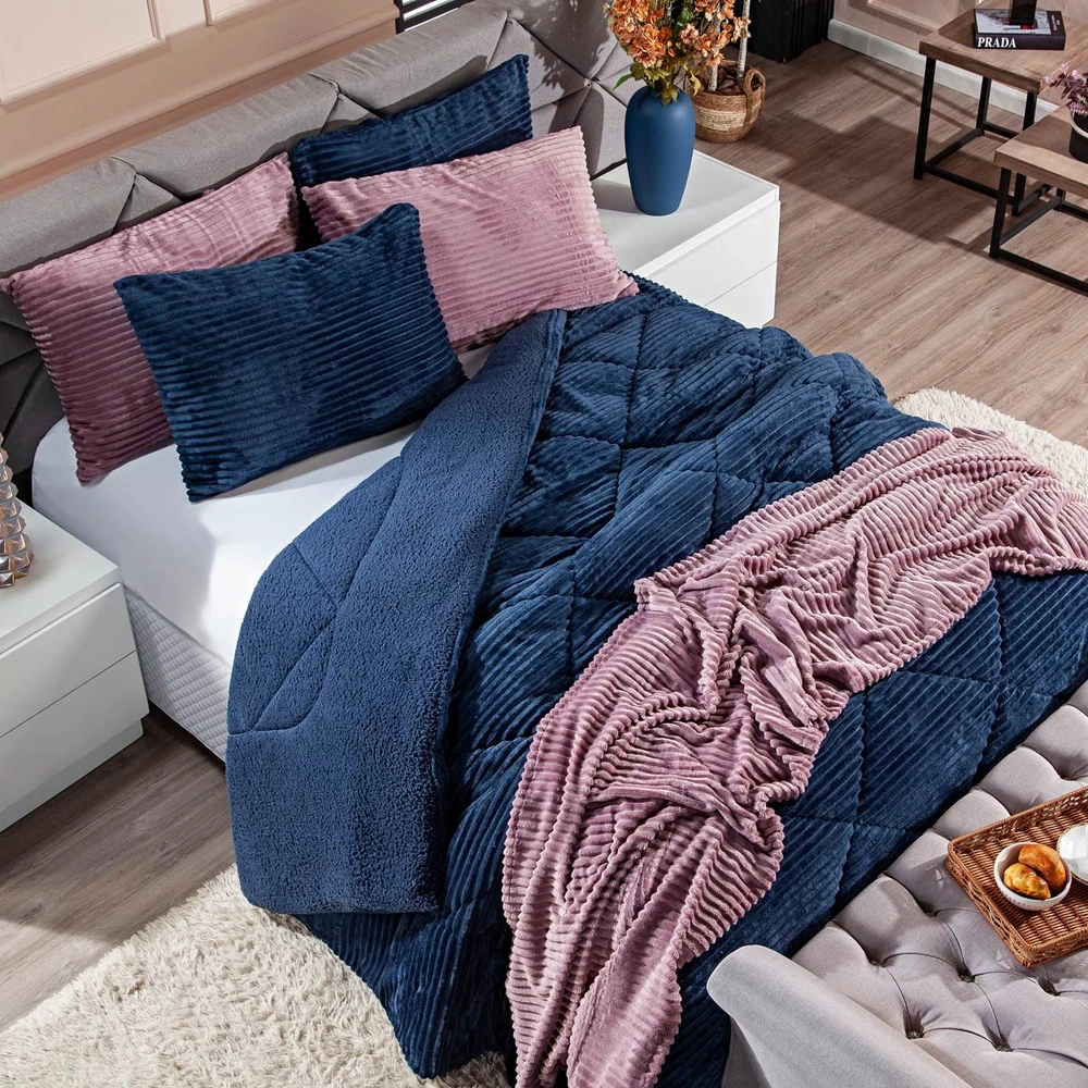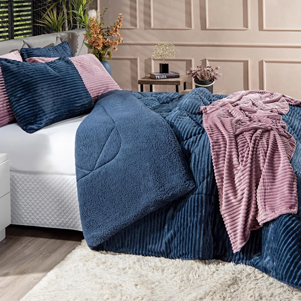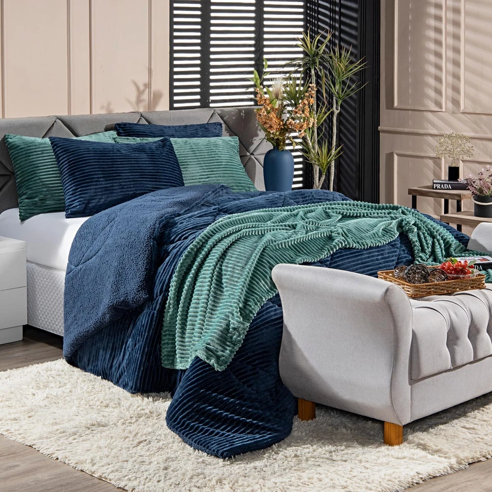 A nova coleção de coberdrons Boston traz toda a sofisticação e aconchego. Por possuírem dupla face, apresentam superfície que valoriza ainda mais as cores! Confeccionado em pantográfica computadorizada com lindos desenhos geométricos. Novidade e tendência para o inverno desse ano, o coberdrom é composto de Manta Canelada Microfibra em um lado e no outro em Sherpa Colorida, com aquele toque de lã de carneiro que conforta e aquece nas noites mais frias. Composição feita em poliéster com 150gr de enchimento, maravilhoso, sofisticado e extremamente macio, perfeito para aquecer, acompanhando também os dois porta-travesseiros canelados com Zíper. Ideal para decorar, trazer conforto e tornar o quarto ainda mais convidativo e elegante! Confira!