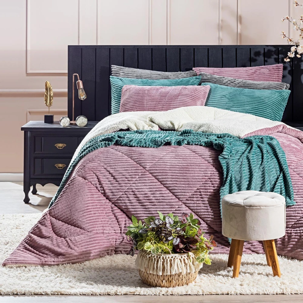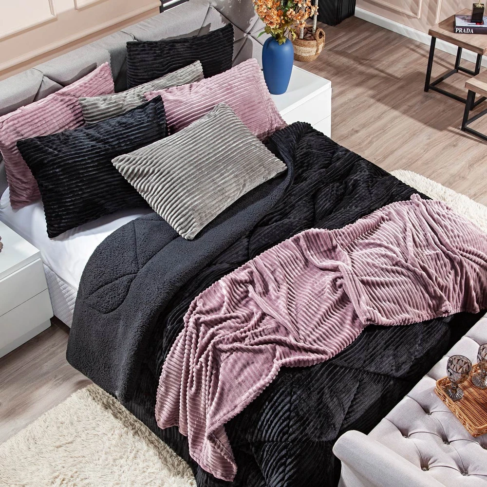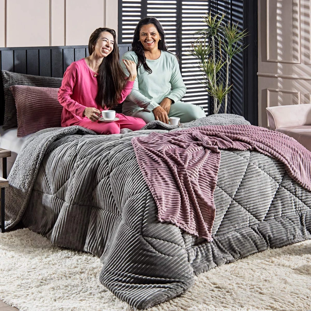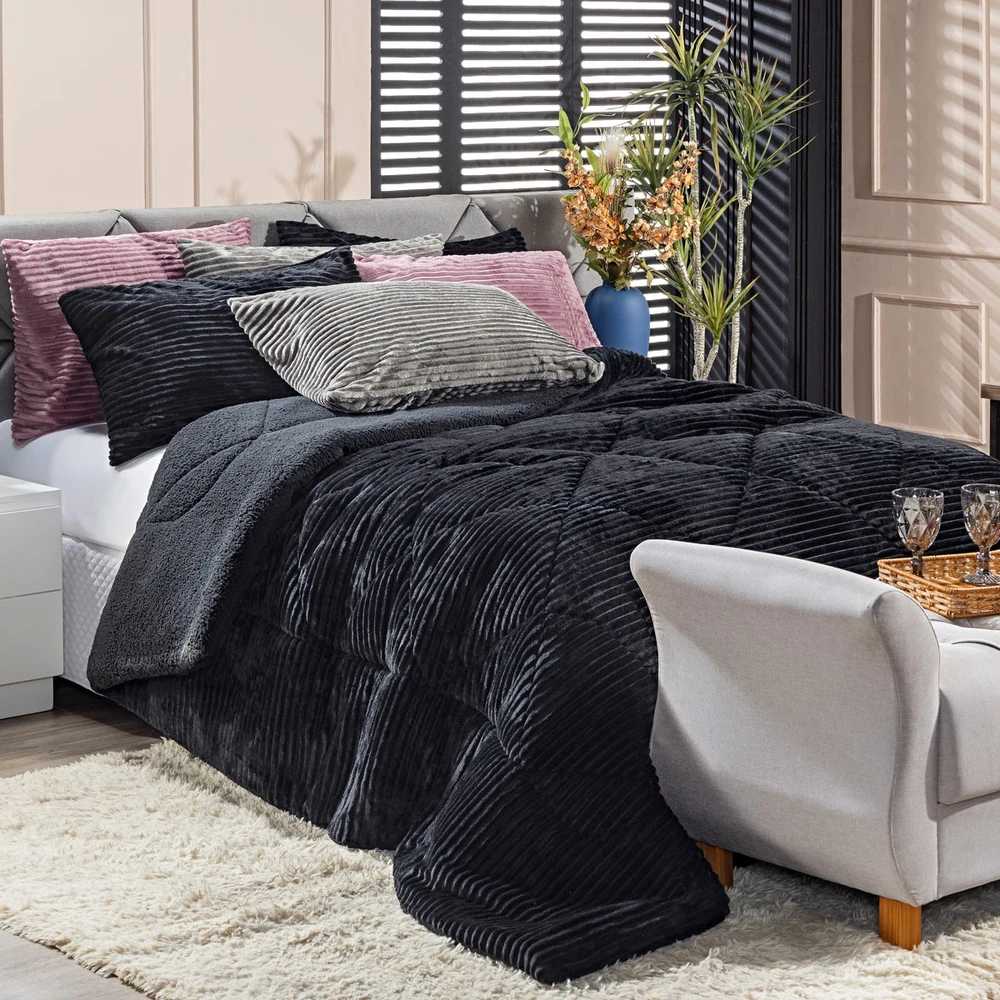 A nova coleção de coberdrons Boston traz toda a sofisticação e aconchego. Por possuírem dupla face, apresentam superfície que valoriza ainda mais as cores! Confeccionado em pantográfica computadorizada com lindos desenhos geométricos. Novidade e tendência para o inverno desse ano, o coberdrom é composto de Manta Canelada Microfibra em um lado e no outro em Sherpa Colorida, com aquele toque de lã de carneiro que conforta e aquece nas noites mais frias. Composição feita em poliéster com 150gr de enchimento, maravilhoso, sofisticado e extremamente macio, perfeito para aquecer, acompanhando também os dois porta-travesseiros canelados com Zíper. Ideal para decorar, trazer conforto e tornar o quarto ainda mais convidativo e elegante! Confira!