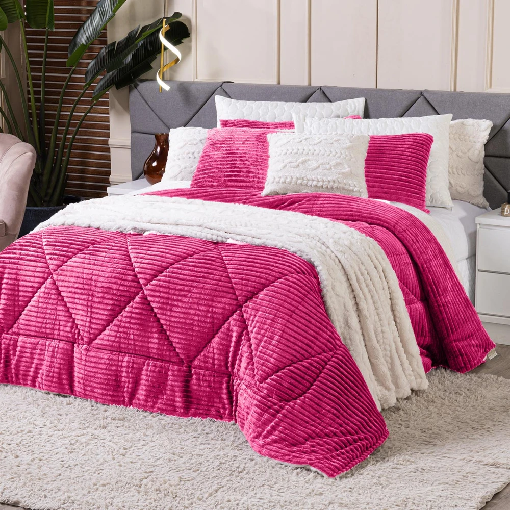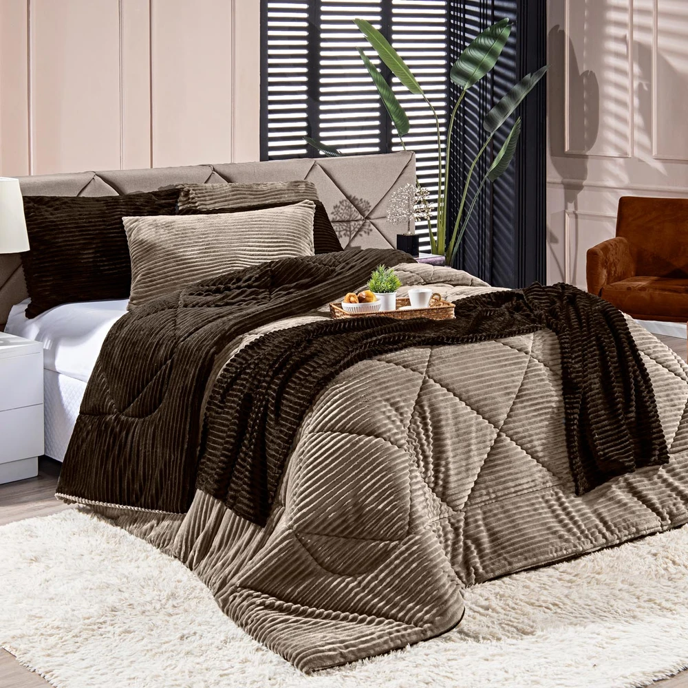 A nova coleção de coberdrons Denver traz toda a sofisticação e aconchego. Por possuírem dupla face, apresentam superfície que valoriza ainda mais as cores! Confeccionado em pantográfica computadorizada com lindos desenhos geométricos. Novidade e tendência para o inverno desse ano, o coberdrom é composto de Manta Canelada Microfibra, com aquele toque incrível que conforta e aquece nas noites mais frias. Composição feita em poliéster com 150gr de enchimento, maravilhoso, sofisticado e extremamente macio, perfeito para aquecer, acompanhando também os dois porta-travesseiros canelados com Zíper. Ideal para decorar, trazer conforto e tornar o quarto ainda mais convidativo e elegante! Confira!