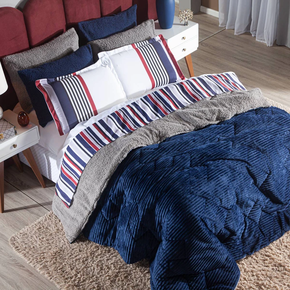A nova coleção de coberdrons Versalhes traz toda a sofisticação e aconchego. Por possuírem dupla face, apresentam superfície que valoriza ainda mais as cores! Confeccionado em pantográfica computadorizada com lindos desenhos geométricos. Novidade e tendência para o inverno desse ano, o coberdrom é composto de Manta Canelada Microfibra em um lado e no outro em Sherpa Colorida, com aquele toque de lã de carneiro que conforta e aquece nas noites mais frias. Composição feita em poliéster com 150gr de enchimento, maravilhoso, sofisticado e extremamente macio, perfeito para aquecer, acompanhando também os dois porta-travesseiros canelados com Zíper. Ideal para decorar, trazer conforto e tornar o quarto ainda mais convidativo e elegante! Confira!