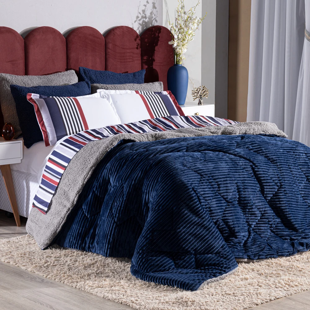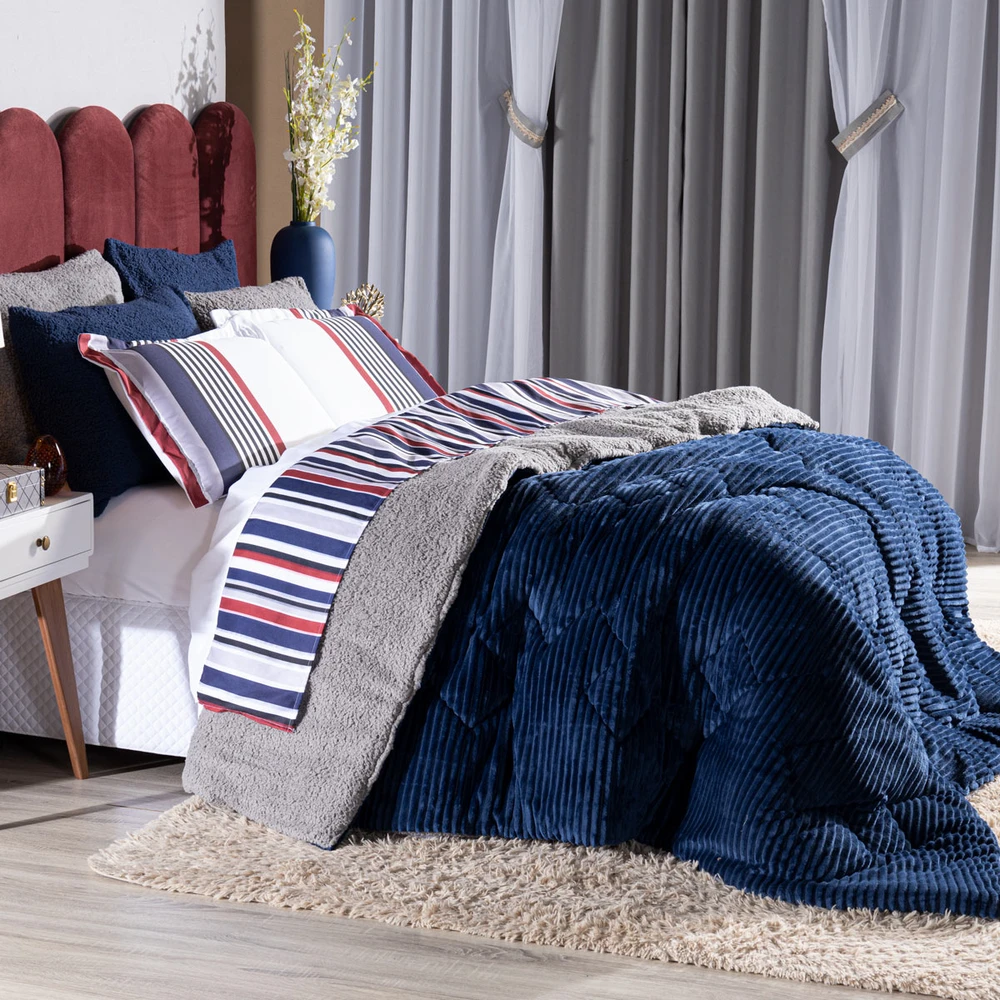 A nova coleção de coberdrons Versalhes traz toda a sofisticação e aconchego. Por possuírem dupla face, apresentam superfície que valoriza ainda mais as cores! Confeccionado em pantográfica computadorizada com lindos desenhos geométricos. Novidade e tendência para o inverno desse ano, o coberdrom é composto de Manta Canelada Microfibra em um lado e no outro em Sherpa Colorida, com aquele toque de lã de carneiro que conforta e aquece nas noites mais frias. Composição feita em poliéster com 150gr de enchimento, maravilhoso, sofisticado e extremamente macio, perfeito para aquecer, acompanhando também um porta-travesseiro canelado com Zíper. Ideal para decorar, trazer conforto e tornar o quarto ainda mais convidativo e elegante! Confira!
