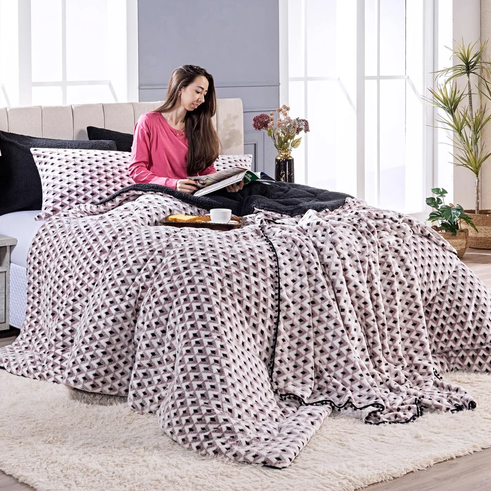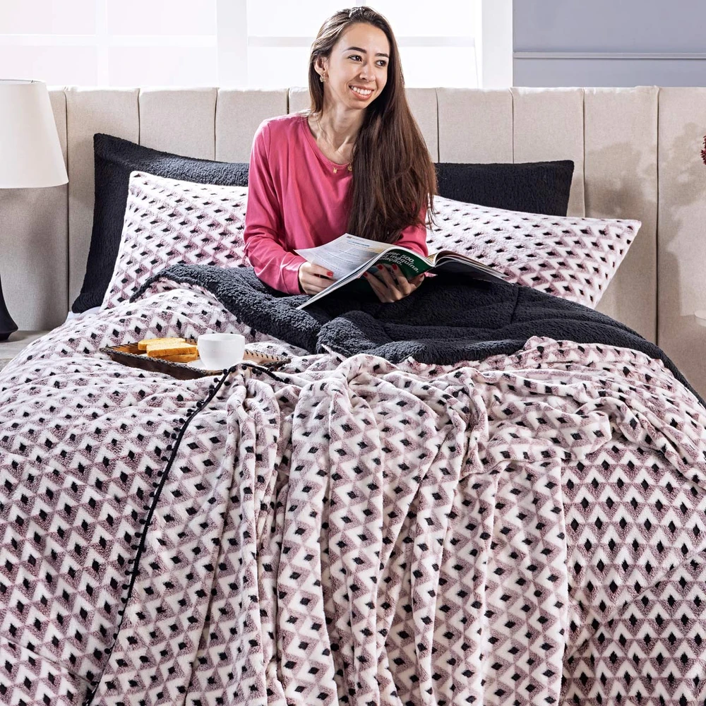 A nova coleção de coberdrons Nevada traz toda a sofisticação e aconchego. Por possuírem dupla face, apresentam superfície que valoriza ainda mais as cores das estampas e também as cores da sherpa colorida, que é a novidade e a tendência do inverno desse ano! Confeccionado em pantográfica computadorizada com lindos desenhos geométricos. Composto de Manta Plush Fleece Aveludado em poliéster com 150gr de enchimento, sofisticado e extremamente macio, perfeito para aquecer, acompanhando também os dois porta-travesseiros estampados com Zíper. Ideal para decorar, trazer conforto e tornar o quarto ainda mais convidativo e elegante! Confira!