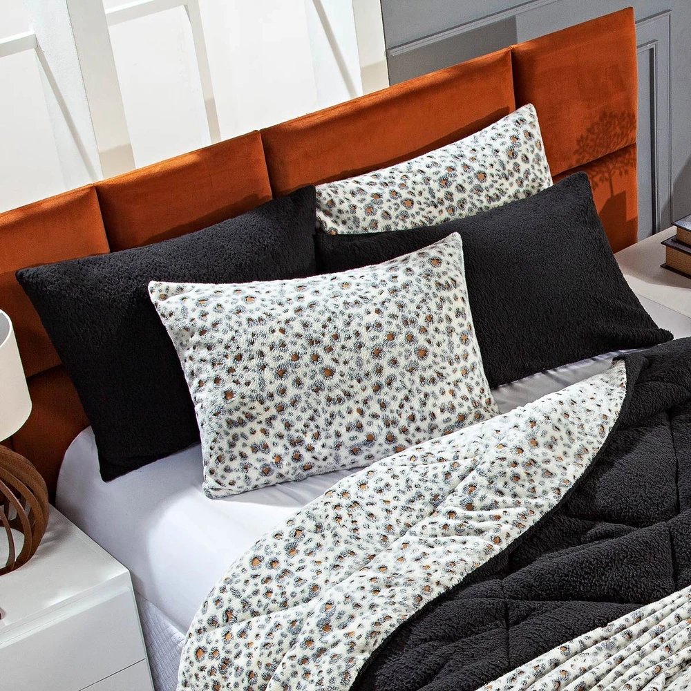Kit Coberdrom Nevada Estampado Onça Preto CASAL PADRÃO 03 Peças - Dupla Face Manta e Sherpa Colorida