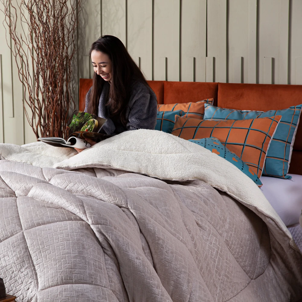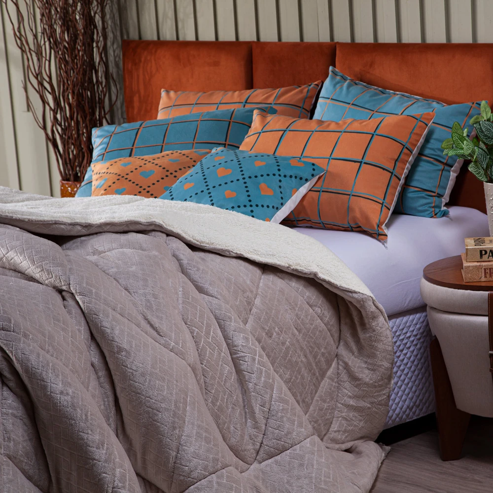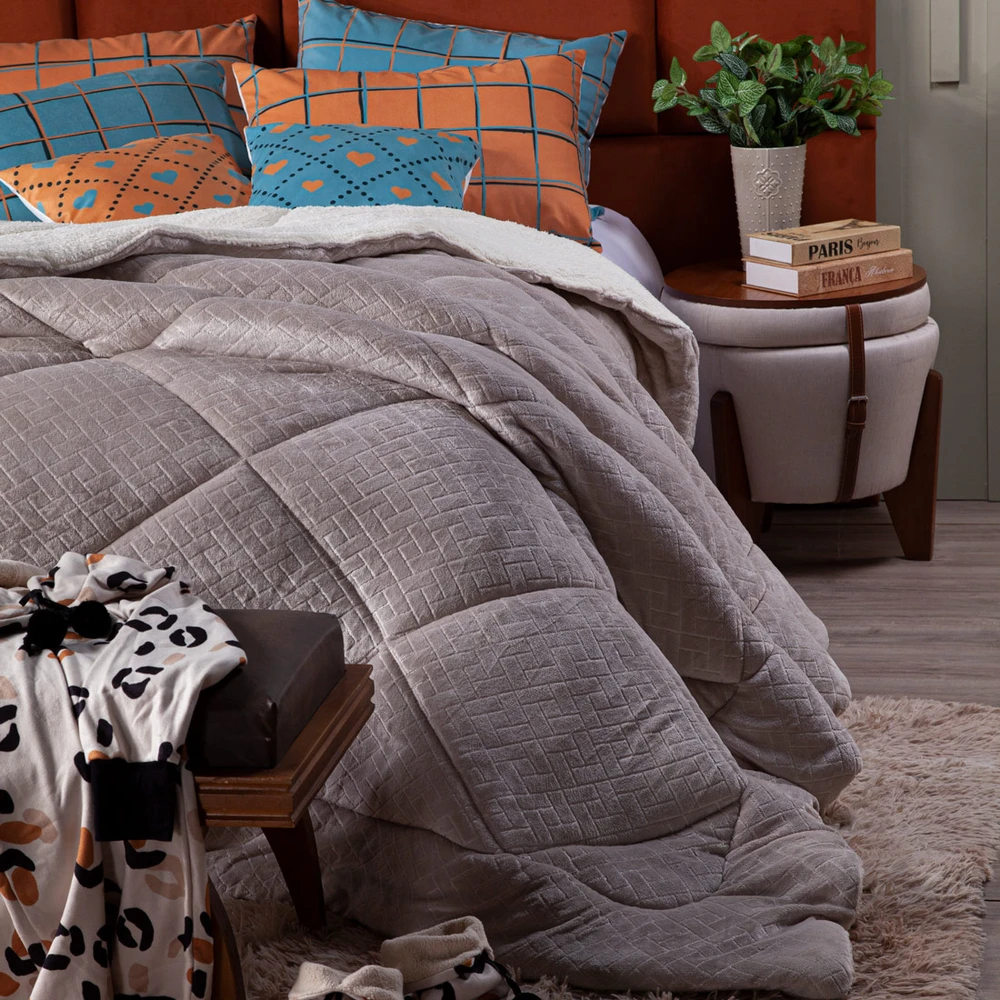A nova coleção de coberdrons Plaza traz toda a sofisticação e aconchego. Por possuírem dupla face, apresentam superfície que valoriza ainda mais as cores, confeccionado em pantográfica computadorizada com lindos desenhos geométricos! Composto de Manta Microfibra em poliéster com 150gr de enchimento e em Sherpa simulando lã de carneiro, extremamente macio e perfeito para aquecer. Acompanhando também porta-travesseiros e capas de almofadas estampados temáticos, todos confeccionados em tecido microfibra de altíssima qualidade! Ideal para decorar, trazer conforto e tornar o quarto ainda mais convidativo e elegante! Confira!
