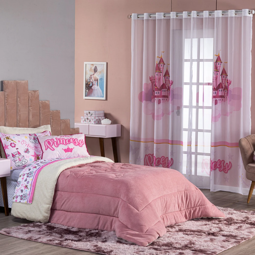 A nova coleção de Coberdrons Princesa traz toda a sofisticação e aconchego. Por possuírem dupla face, apresentam superfície que valoriza ainda mais as cores, confeccionado em pantográfica computadorizada com um lindo desenho temático pantografado no coberdrom! Composto de Manta Microfibra em poliéster com 150gr de enchimento e em Sherpa simulando lã de carneiro, extremamente macio e perfeito para aquecer. Acompanhando também um porta-travesseiro estampado e uma almofada estampada temática super moderna! Ideal para decorar, trazer conforto e tornar o quarto ainda mais convidativo e elegante para sua princesa! Confira!