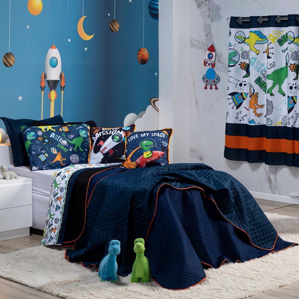 A Nova Coleção Astrodino em Microfibra tem um toque suave e macio, o tecido caracteriza-se por ser muito leve, confortável, sedoso, com secagem rápida e ótimo caimento. Vem trazendo estilo para a decoração de seu quarto na nova tendência Dupla Face, podendo utilizar as 2 cores do cobre leito! Ficará de ótimo bom gosto e elegância, acompanhando porta-travesseiro e duas almofadinhas estampadas super modernas e temáticas de Dinossauros! Tudo para combinar com a decoração, perfeito para dar aquele upgrade no ambiente ou para presentear quem você ama! Confira!