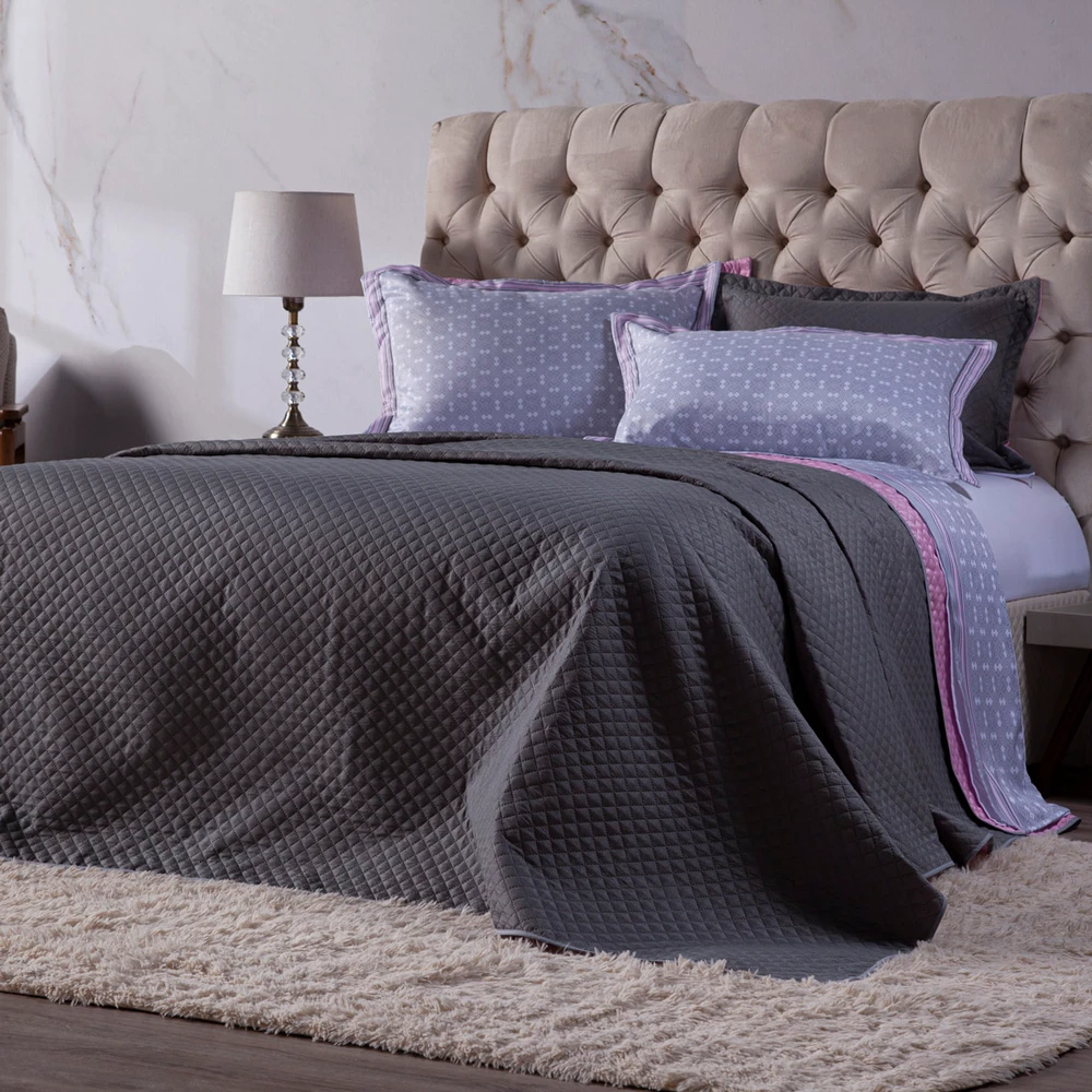 Confeccionado em tecido Microfibra 100% poliéster, a nova Coleção Atrina vem trazendo um toque macio, com portas travesseiros matelados em acabamento debrum, o cobre leito com enchimento em manta dupla face, permitindo o uso dos dois lados (Cinza e Rosa) com lindos detalhes nas fronhas estampadas e na vira de lençol em desenho geométrico, tudo para combinar com a sua decoração! Produzido num rigoroso controle de qualidade, dando um toque de requinte para o ambiente. Confira!