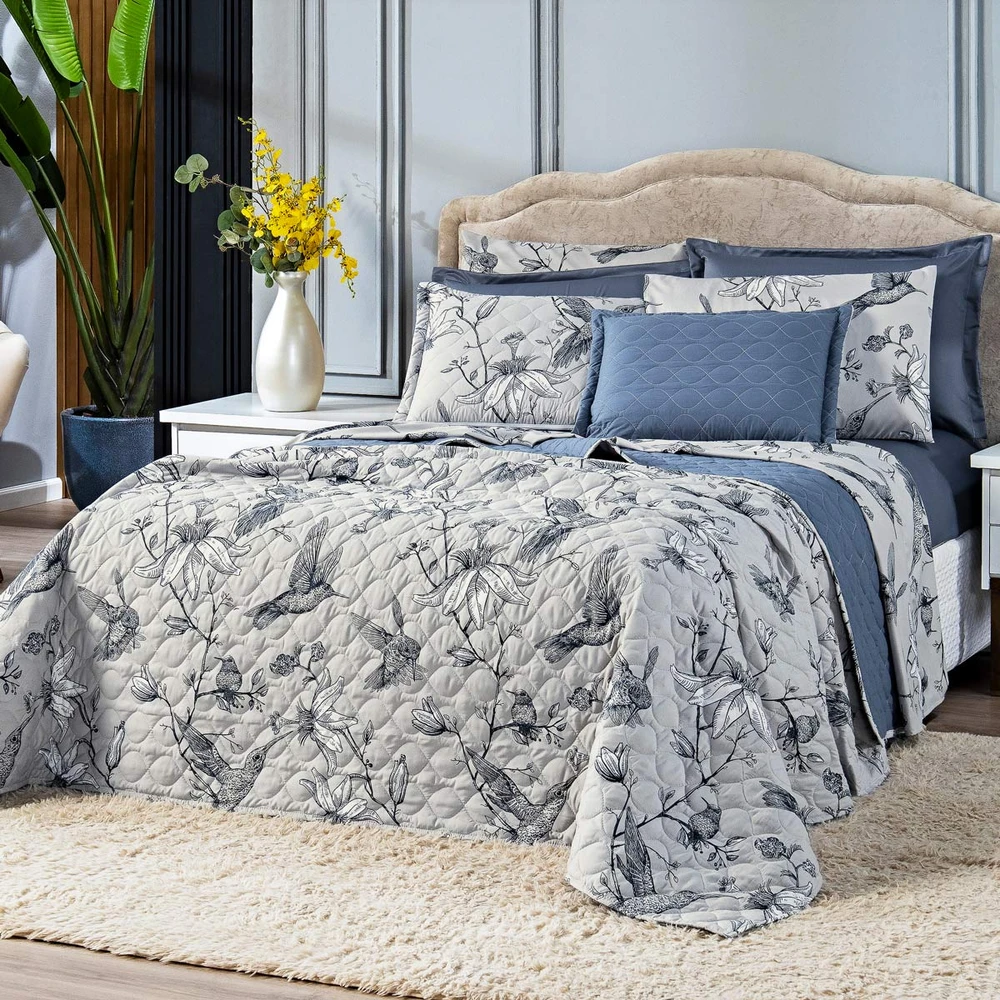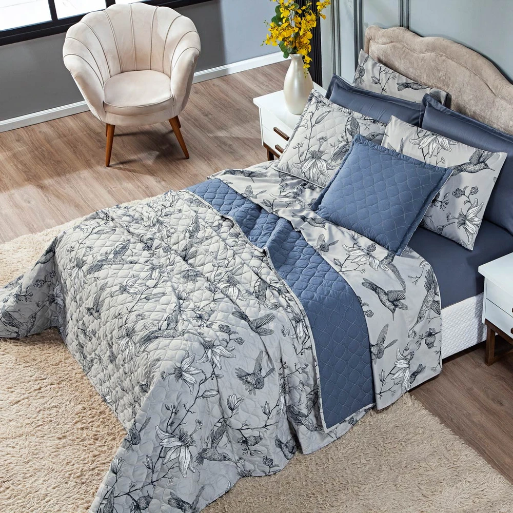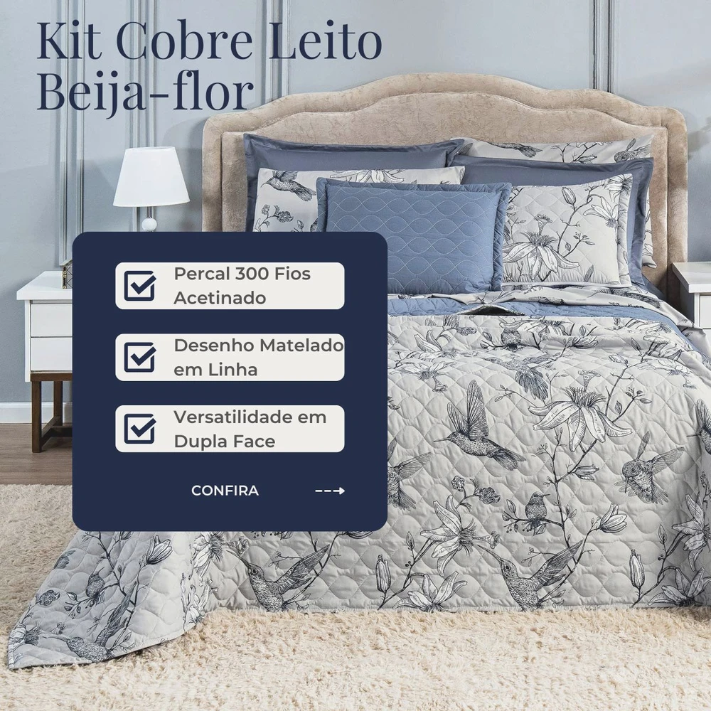 Transforme seu quarto em um oásis de conforto e elegância com o Kit Cobre Leito Beija-flor! Este conjunto exuberante, confeccionado em tecido percal de 300 fios acetinado, oferece o toque suave e a qualidade premium que você merece. Com sua versatilidade na tendência dupla face, você pode optar entre o lado azul liso vibrante ou o cinza estampado sofisticado, garantindo que seu ambiente reflita seu estilo único, com lindos desenhos matelados em linha em todo o cobre leito e também nas fronhas estampadas com debrum na volta. Além disso, o design encantador de beija-flor adiciona um toque de natureza e charme à sua decoração. Proporcionando praticidade e beleza em igual medida, renove seu espaço de descanso com este kit e desfrute de noites de sono tranquilas, confortáveis e cheias de estilo. Confira!