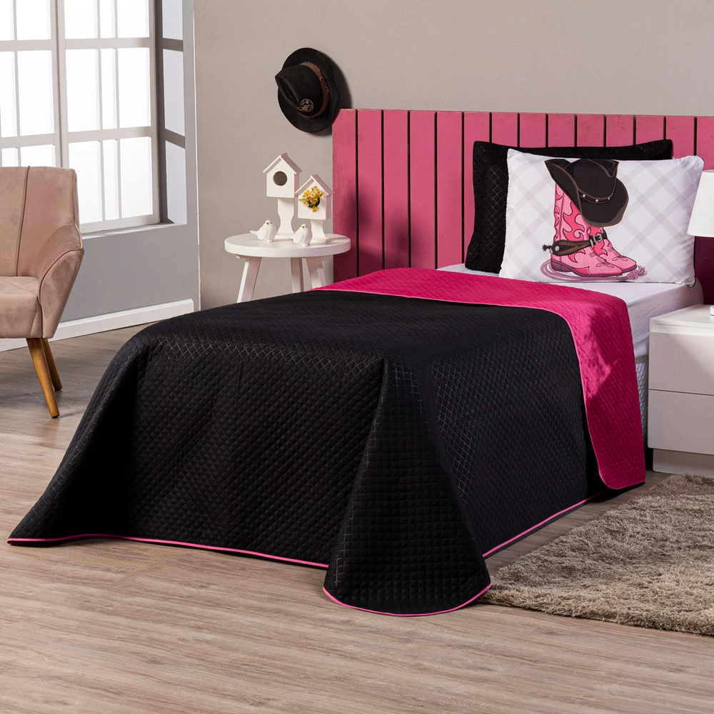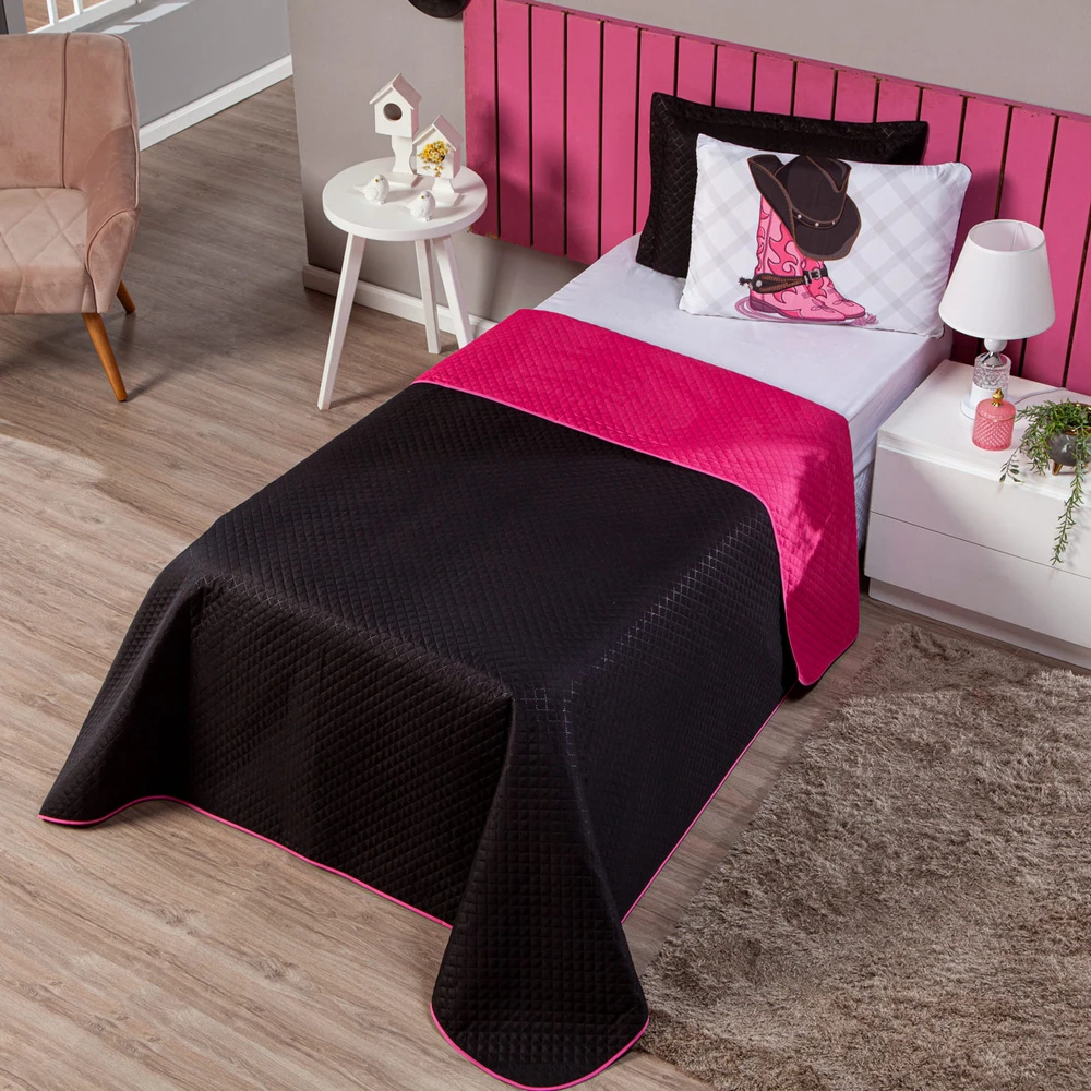 O Kit Cobre Leito Boiadeira é a escolha perfeita para adicionar um toque de elegância e autenticidade ao seu quarto. Este conjunto é dupla face, com um lado em preto clássico e outro em pink vibrante, permitindo que você altere o estilo de acordo com seu humor. O kit inclui uma fronha estampada e uma lisa matelada que completa o visual, proporcionando um toque de sofisticação ao conjunto. Especificamente projetado para camas de solteiro, este conjunto é a maneira ideal de transformar seu quarto em um refúgio acolhedor com aquele toque Boiadeira único e moderno. Perfeito para quem aprecia o charme do sertanejo e o estilo contemporâneo. Confira!