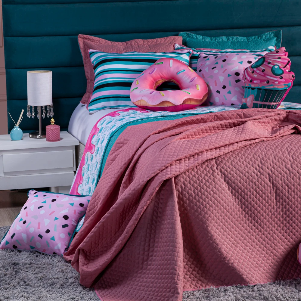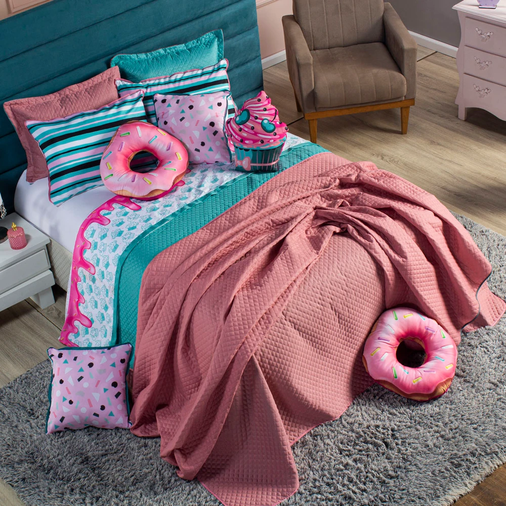 A Nova Coleção Cake Donuts em Microfibra tem um toque suave e macio, o tecido caracteriza-se por ser muito leve, confortável, sedoso, com secagem rápida e ótimo caimento. Vem trazendo estilo para a decoração de seu quarto na nova tendência Dupla Face, podendo utilizar as 2 cores do cobre leito! Ficará de ótimo bom gosto e elegância, acompanhando porta-travesseiros e três almofadinhas estampadas super modernas e temáticas! Tudo para combinar com a decoração, perfeito para dar aquele upgrade no ambiente ou para presentear quem você ama! Confira!