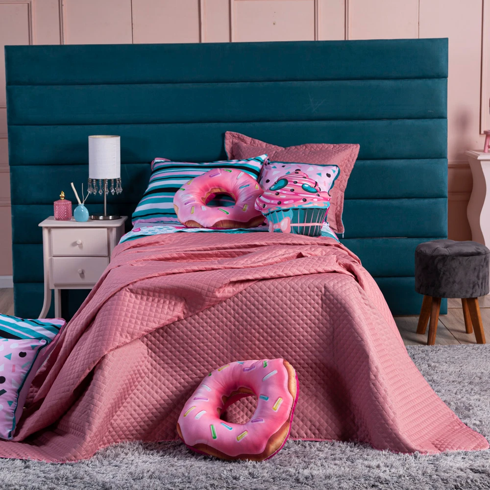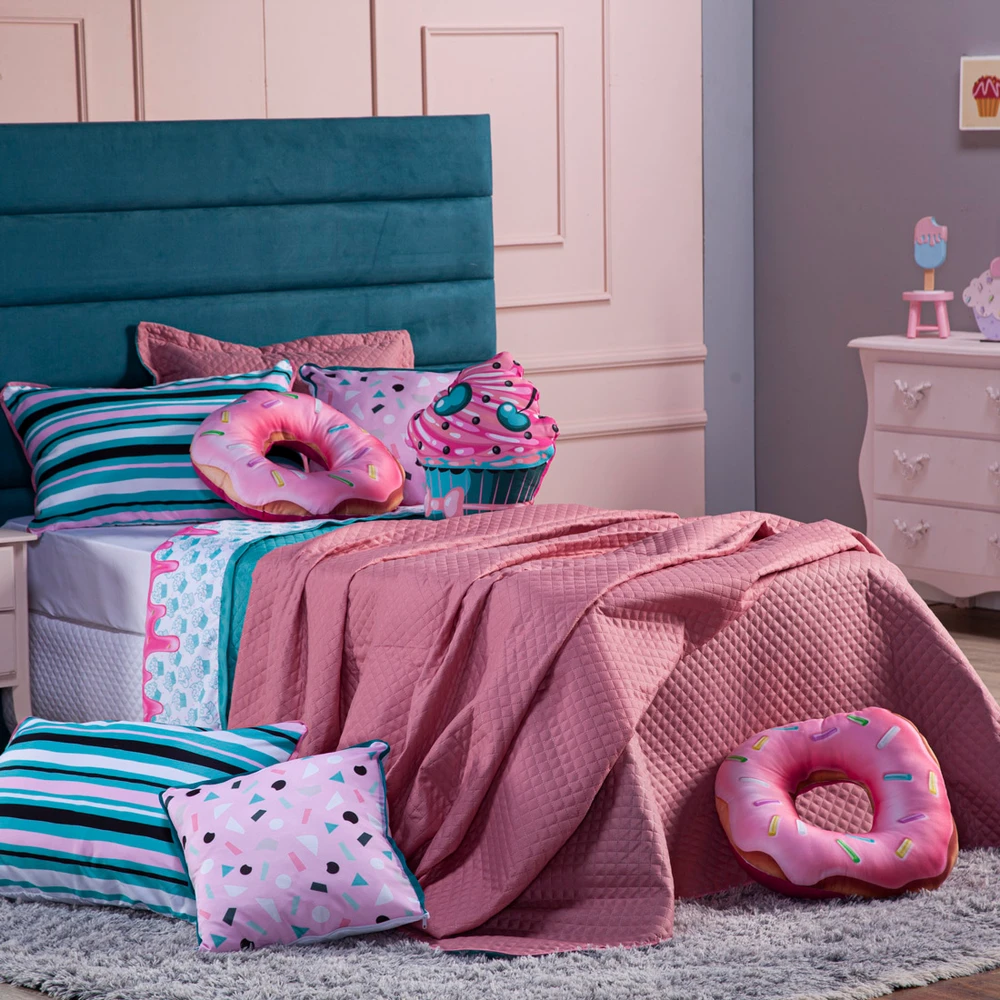 A Nova Coleção Cake Donuts em Microfibra tem um toque suave e macio, o tecido caracteriza-se por ser muito leve, confortável, sedoso, com secagem rápida e ótimo caimento. Vem trazendo estilo para a decoração de seu quarto na nova tendência Dupla Face, podendo utilizar as 2 cores do cobre leito! Ficará de ótimo bom gosto e elegância, acompanhando porta-travesseiros e três almofadinhas estampadas super modernas e temáticas! Tudo para combinar com a decoração, perfeito para dar aquele upgrade no ambiente ou para presentear quem você ama! Confira!