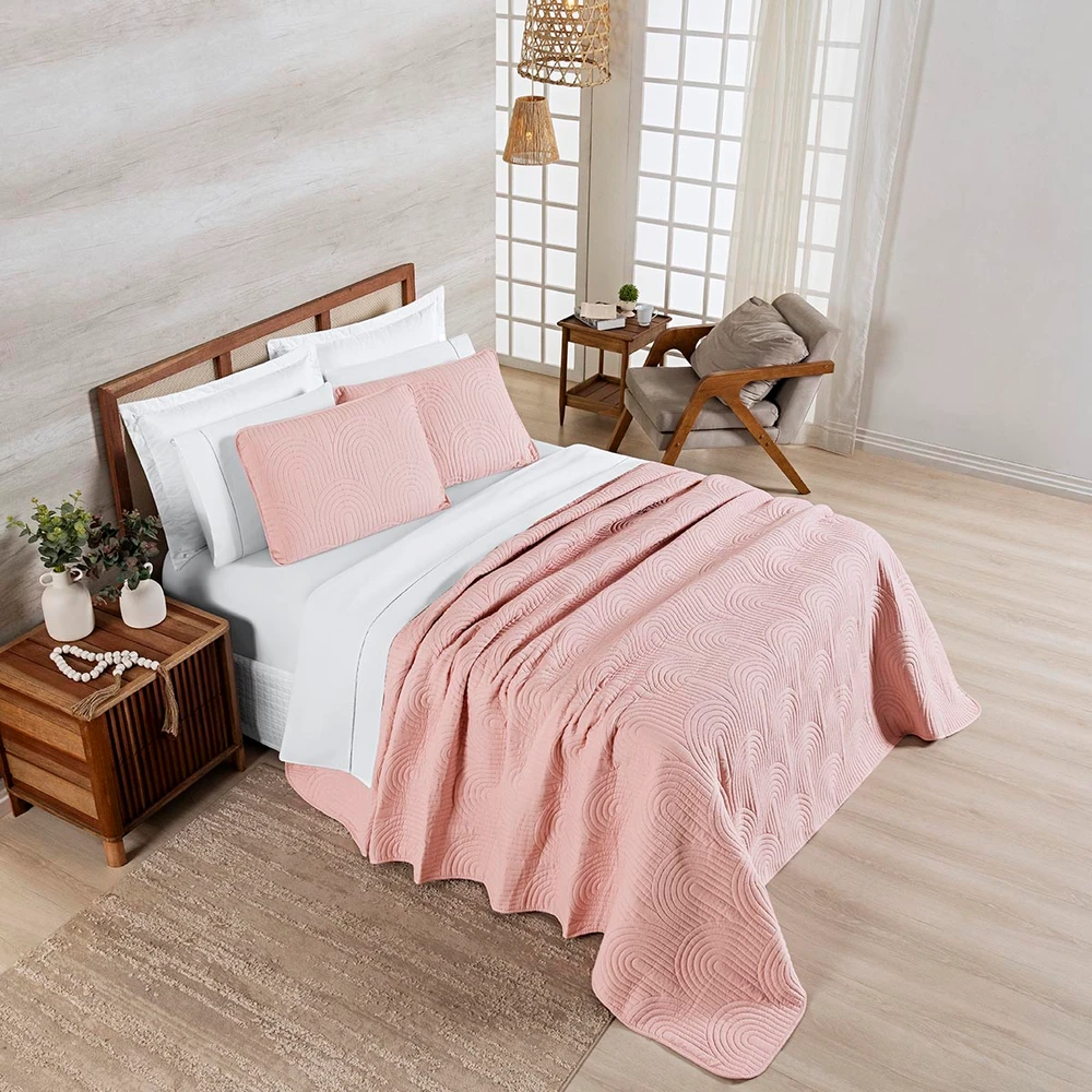 O Kit Cobre Leito Arcos é perfeito para quem busca conforto e sofisticação no quarto. Confeccionado em tecido Micropercal 200 fios, possui um matelado ultrassônico que confere elegância e requinte à peça. O enchimento super soft garante maciez e aconchego na hora de dormir. Compondo o conjunto, acompanham duas fronhas com a mesma qualidade e acabamento impecável. Ideal para dar um toque de charme ao seu ambiente, o Kit Cobre Leito Arcos é a escolha certa para um quarto moderno e cheio de estilo.