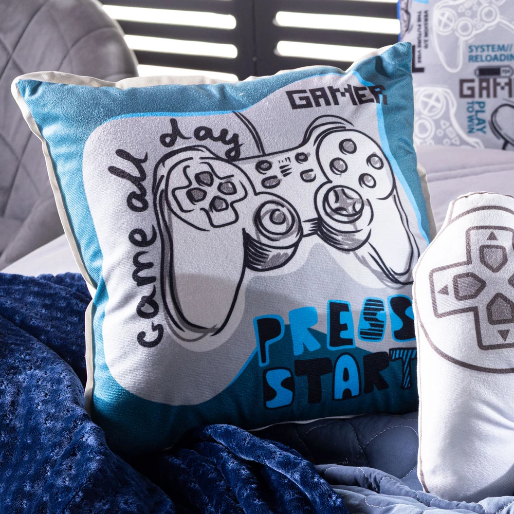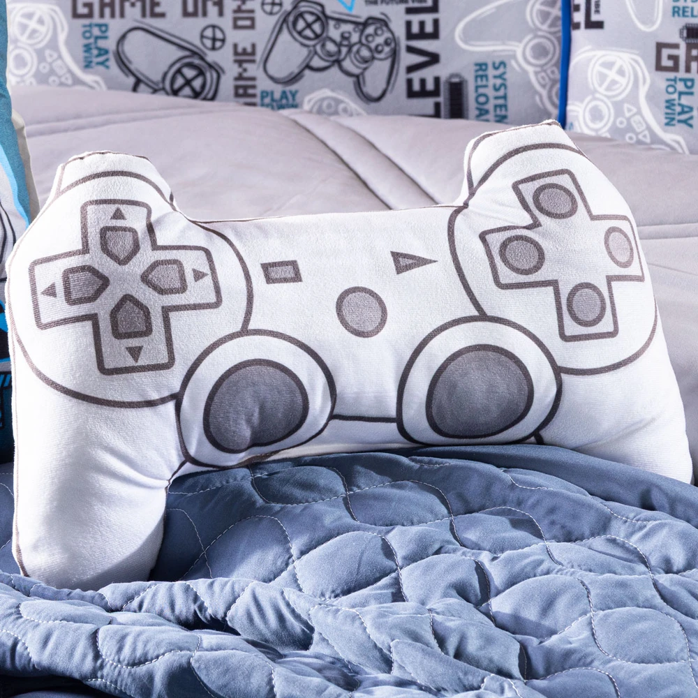 O Kit Cobre Leito Game Start é perfeito para quem ama o universo gamer e quer levar esse estilo para a decoração do quarto. Confeccionado em Percal 300 Fios Dupla Face, o cobre leito oferece toque super macio e acabamento impecável. O kit acompanha fronhas, capa de almofada com tema de videogame e uma almofada divertida em formato de controle, tudo estampado em um tecido de veludo com um toque incrível, deixando o ambiente moderno e descontraído. Ideal para crianças, jovens e adultos que respiram o mundo dos games e valorizam conforto aliado a design exclusivo. Confira!