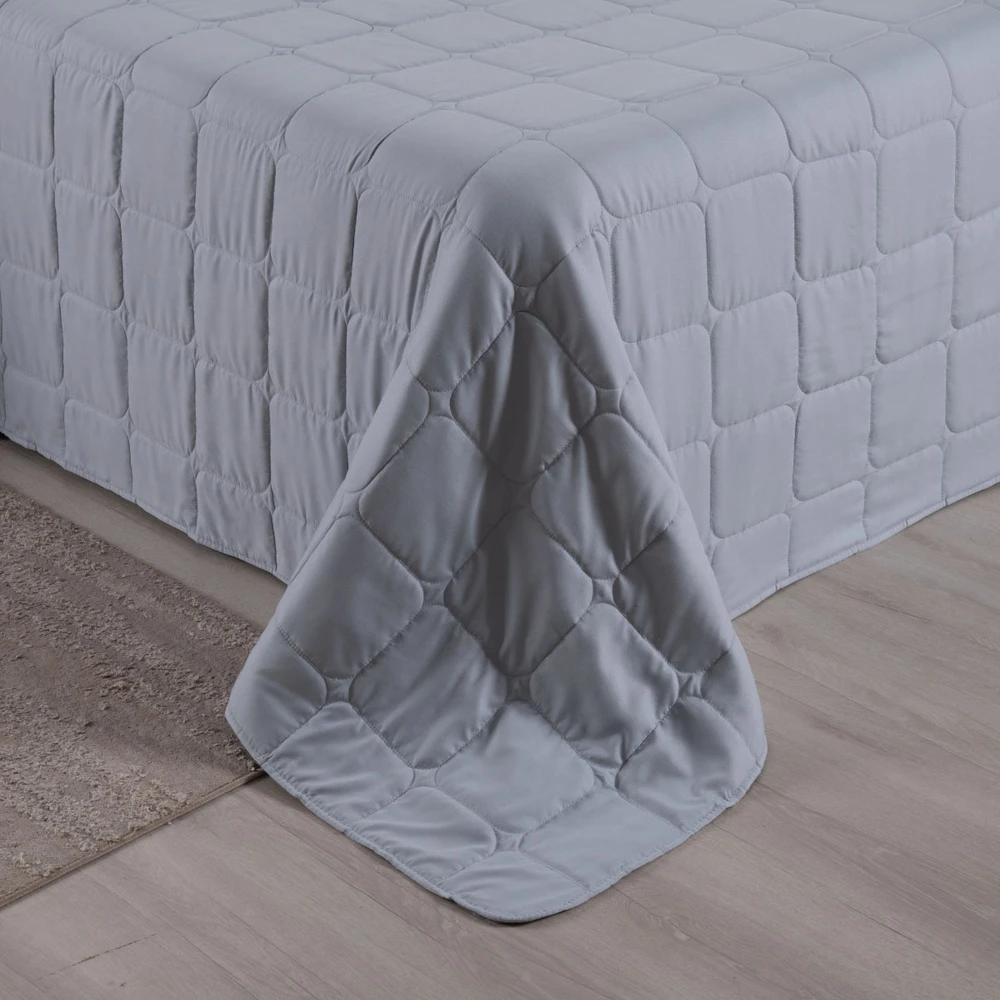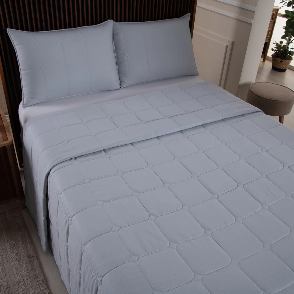 Kit Cobre Leito Colcha Speciale Casal Matelado Toque Acetinado 400 Fios 3 Peças Cinza