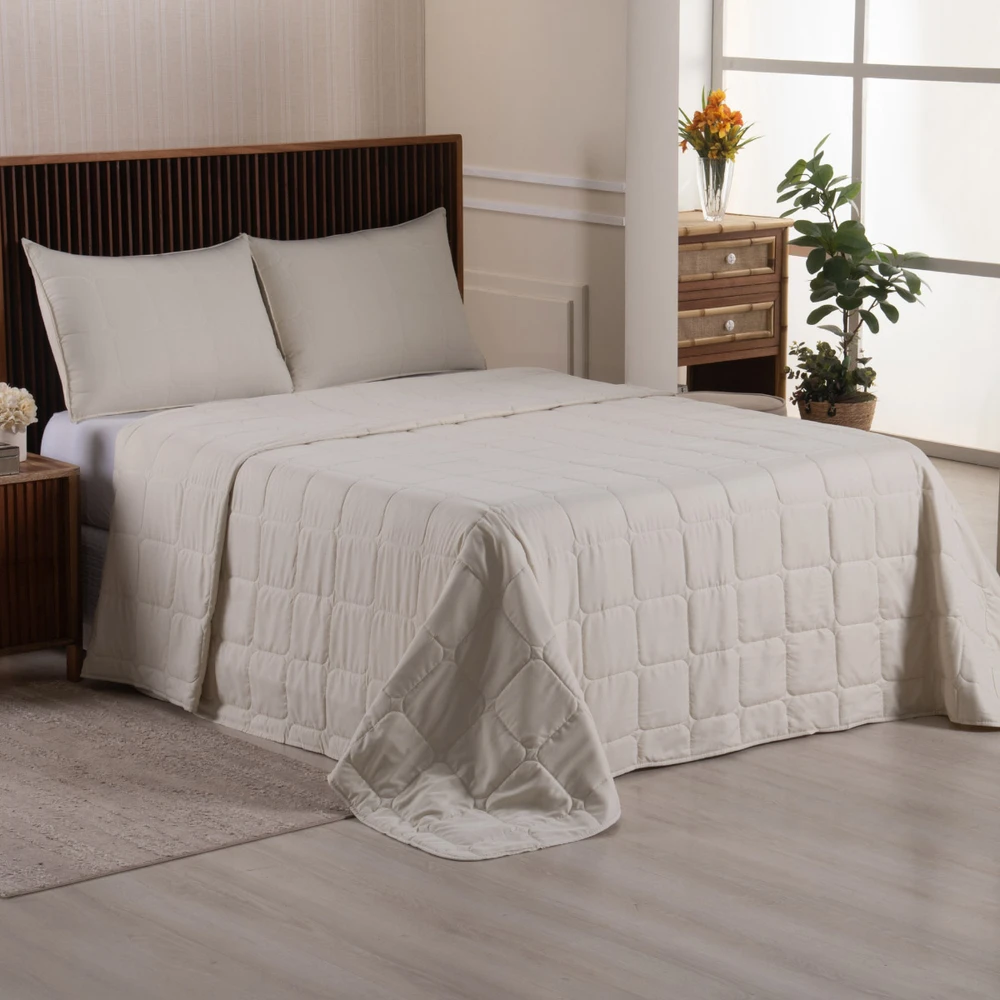 Renove seu quarto com sofisticação e conforto. Confeccionado em Micropercal 400 fios com toque acetinado, o Kit Cobre Leito Speciale oferece maciez incomparável e elegância única. O matelado em costura de linha garante resistência e durabilidade, enquanto o acabamento em viés traz um charme refinado ao visual.