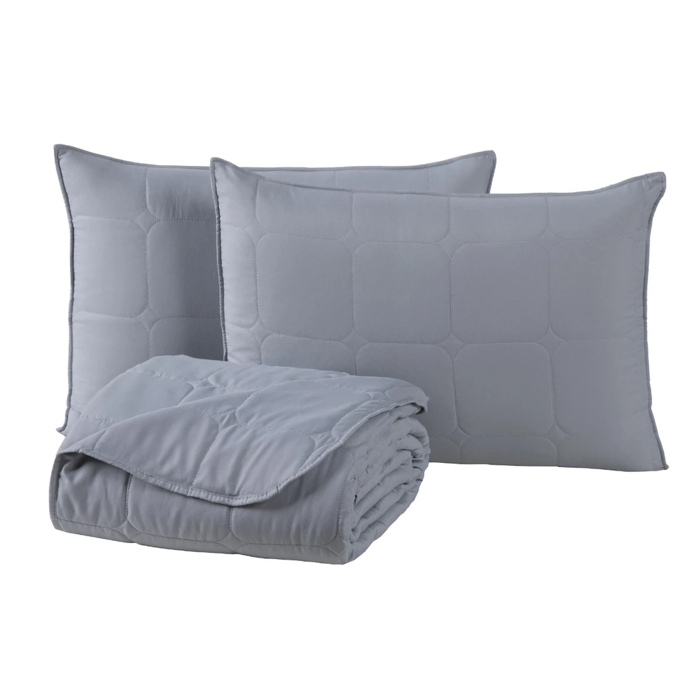Kit Cobre Leito Colcha Speciale King Matelado Toque Acetinado 400 Fios 3 Peças Cinza