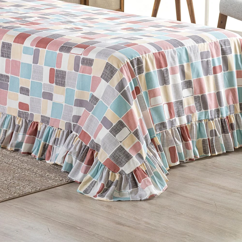 Kit Cobre Leito Colcha Turin Casal Estampada c/ Babado 400 Fios 3 Peças Pastilhas Coloridas Rosê