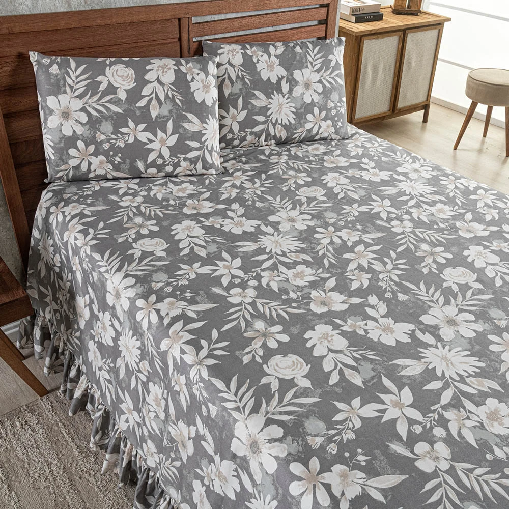 O Kit Colcha Turin é sinônimo de elegância e conforto. Confeccionado em tecido Micropercal 400 fios, oferece um toque macio, além de alta durabilidade e caimento impecável. Seu acabamento com babado em toda a volta valoriza o visual da cama, proporcionando um charme especial e sofisticado ao ambiente.