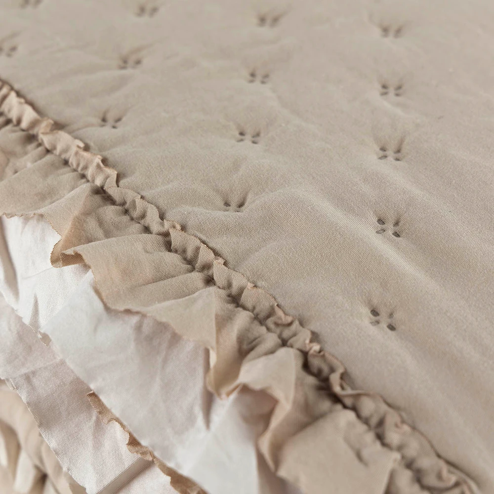 Kit Cobre Leito Colcha Vitta Casal Padrão Matelado c/ Babadinhos 200 Fios 3 Peças Bege