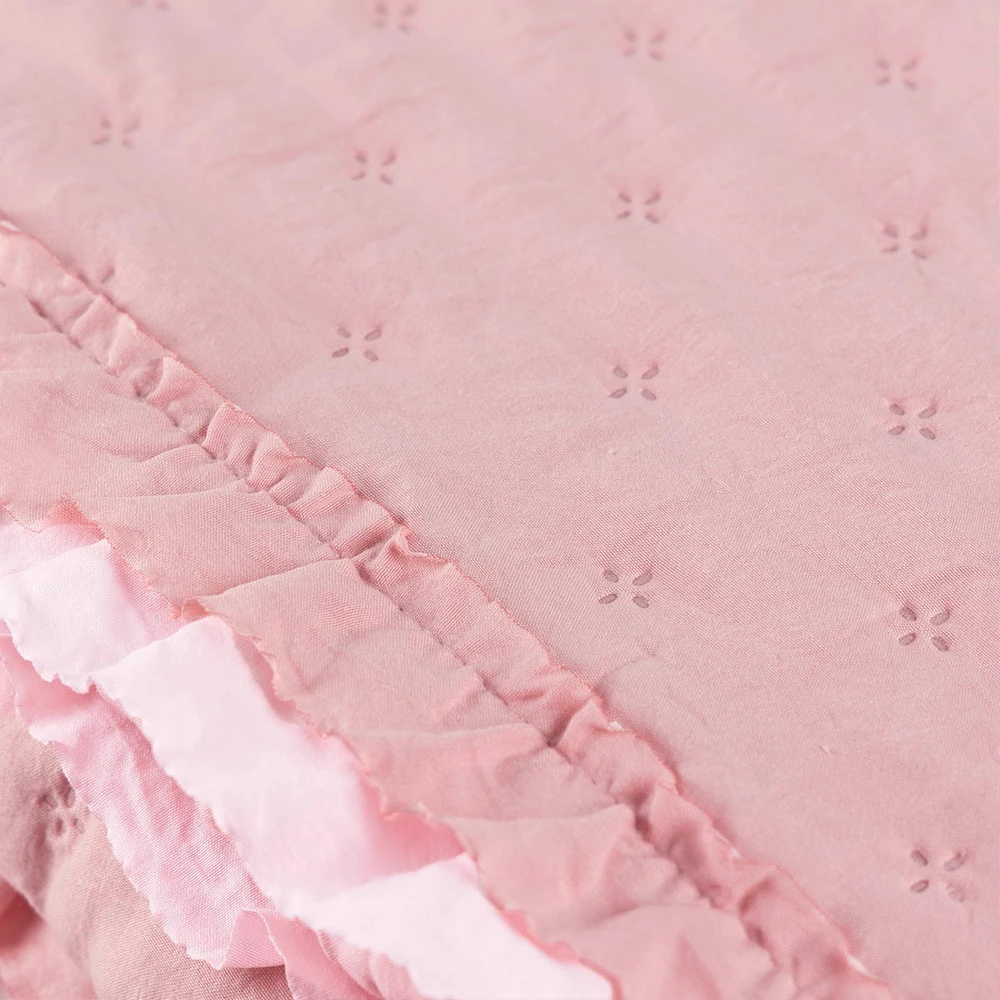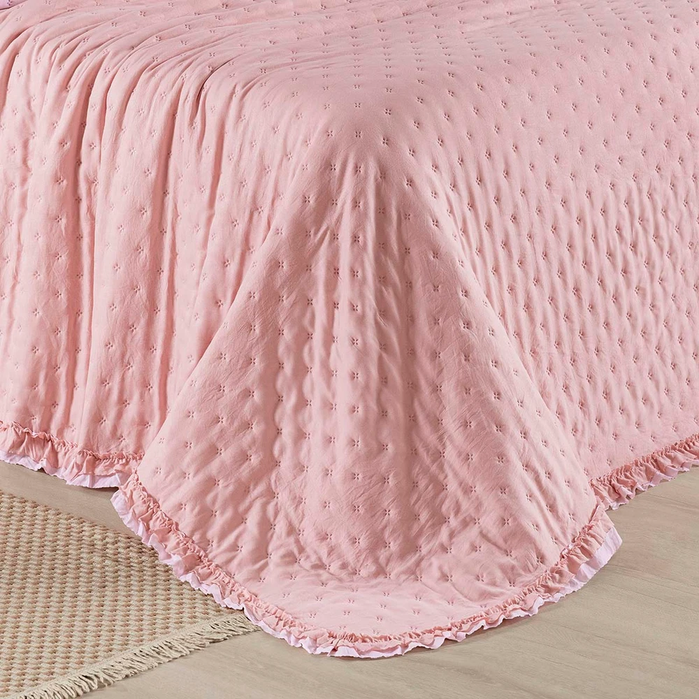 Kit Cobre Leito Colcha Vitta King Matelado c/ Babadinhos 200 Fios 3 Peças Rosa
