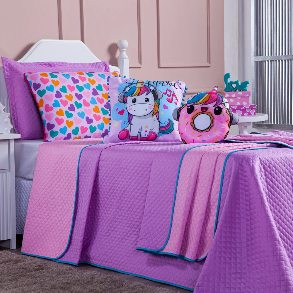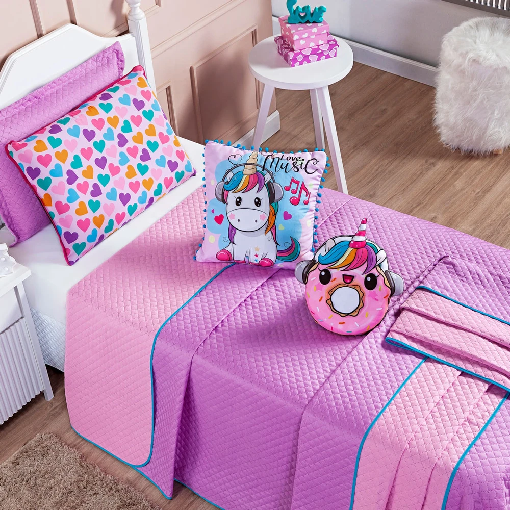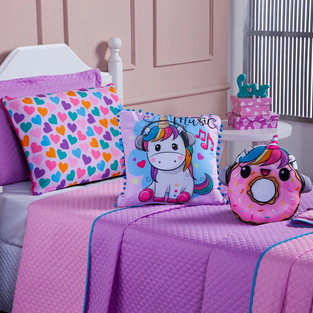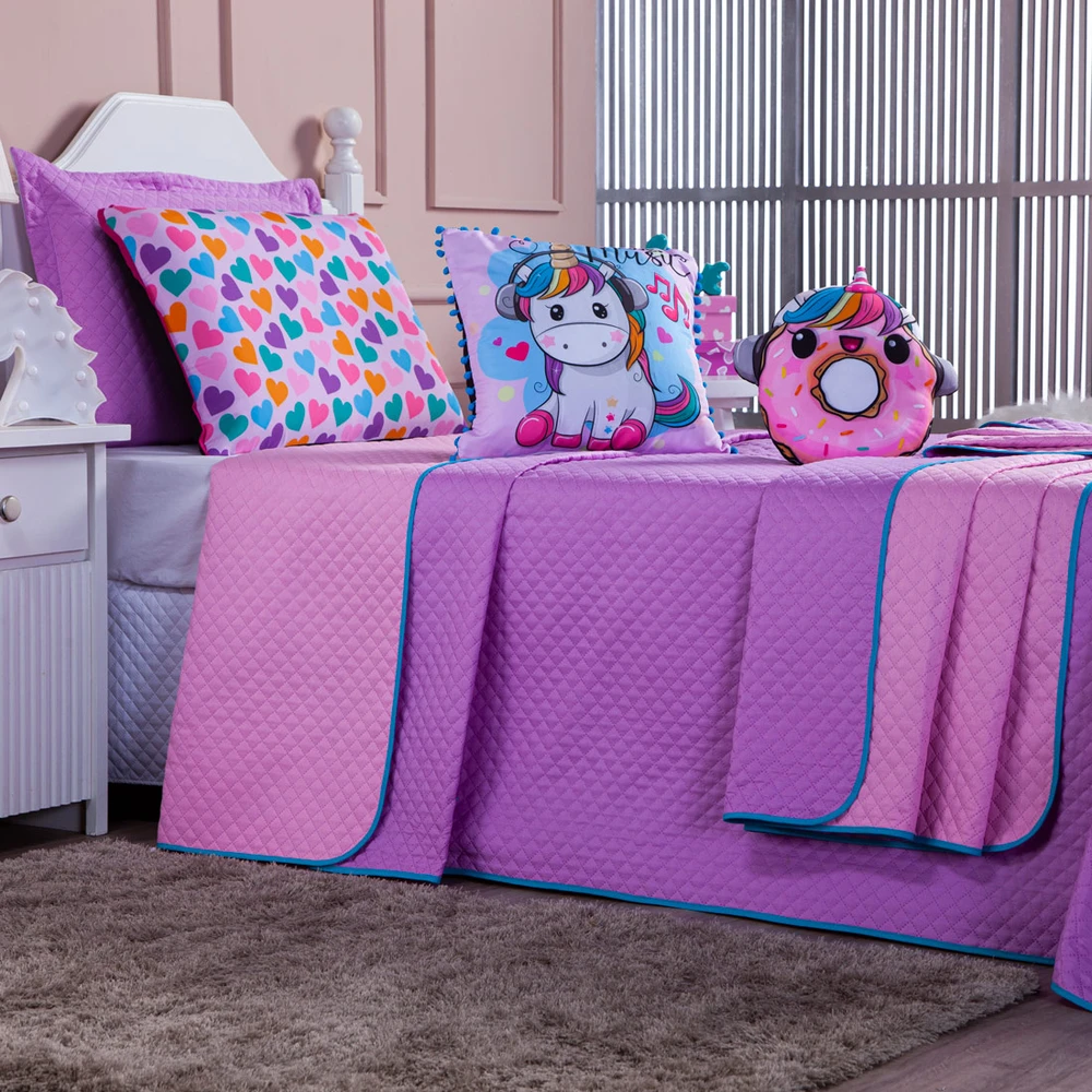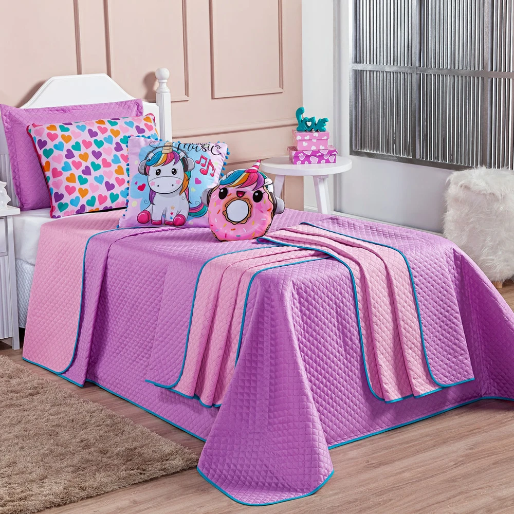 A Nova Coleção Donuts em Microfibra tem um toque suave e macio. O tecido caracteriza-se por ser muito leve, confortável, sedoso, com secagem rápida e ótimo caimento. Vem trazendo estilo para a decoração de seu quarto na nova tendência Dupla Face, podendo utilizar as 2 cores do cobre leito! Ficará de ótimo bom gosto e elegância. Acompanhando também uma almofadinha estampada temática com lindos detalhes em PomPom em toda a volta, junto com uma em formato de donuts super fofa! Tudo para combinar com o seu Kit! Confira!