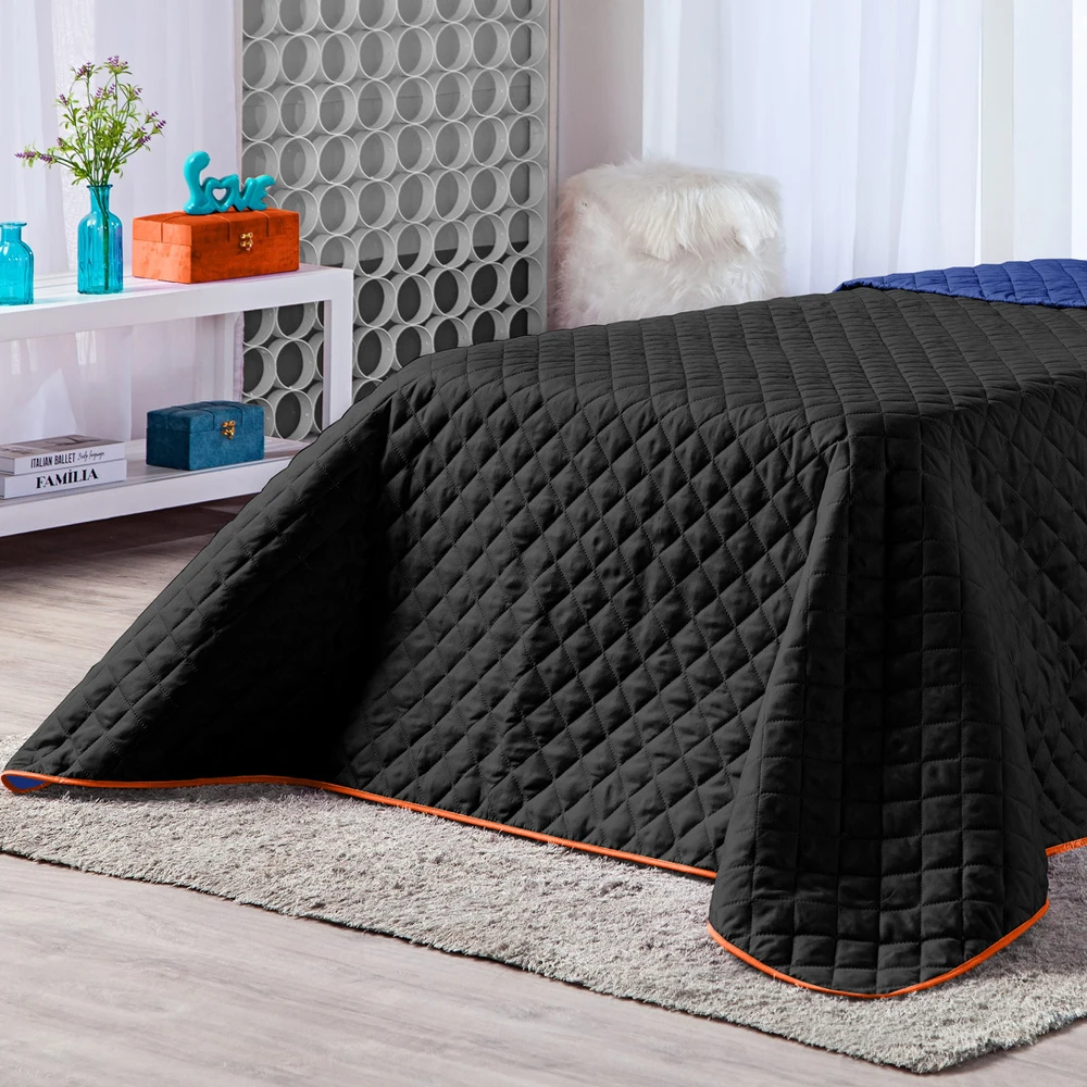Kit Cobre Leito Dual Color Preto/Azul Marinho Solteiro 02 Peças - Dupla Face