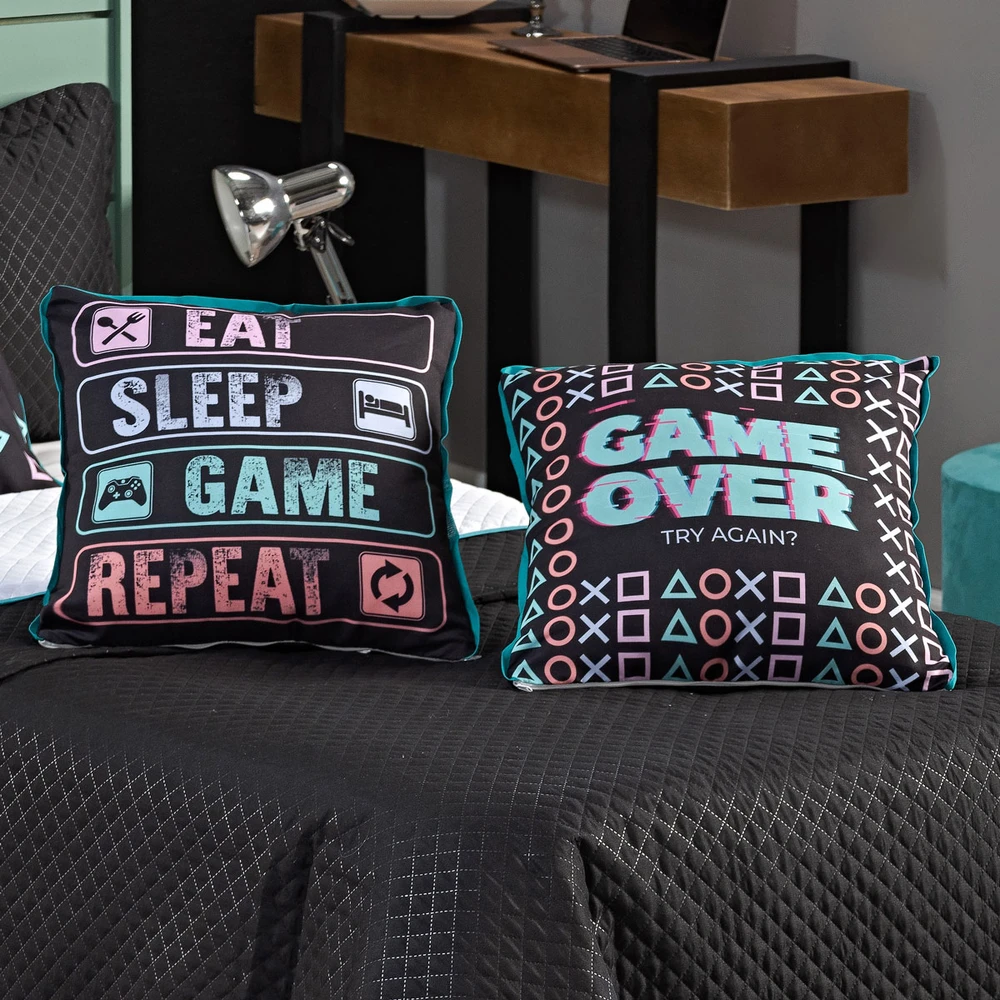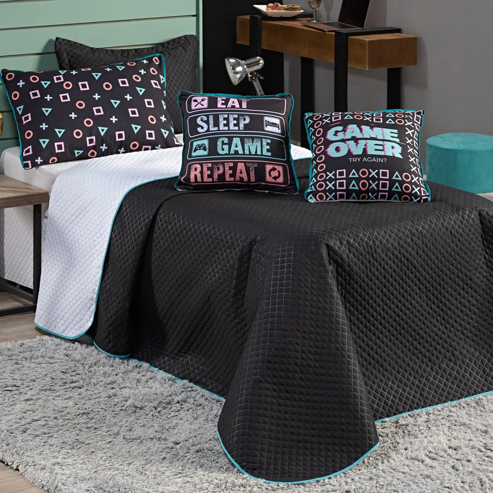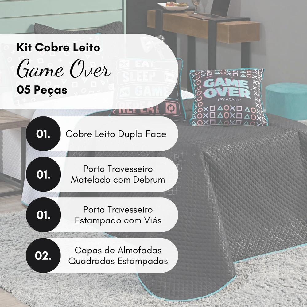 Apresentamos o Kit Cobre Leito Game Over, perfeito para os apaixonados por games e estilo moderno. Este conjunto oferece cinco peças cuidadosamente selecionadas para transformar o quarto do seu jovem gamer. Com um design divertido inspirado em jogos e video-games marcantes, este kit traz uma vibe contemporânea e descontraída ao ambiente. A face dupla proporciona versatilidade, permitindo que você alterne entre os estilos conforme desejar. O kit inclui um cobre leito acolchoado, porta-travesseiros matelado e estampado e duas capas de almofadas estampadas temáticas, garantindo uma cama confortável e estilosa. Combinando personalidade e conforto, este kit é a escolha ideal para quem busca criar um espaço único e acolhedor para os fãs de jogos. Confira!