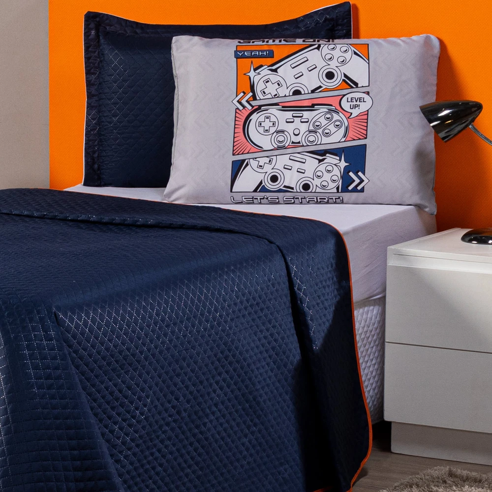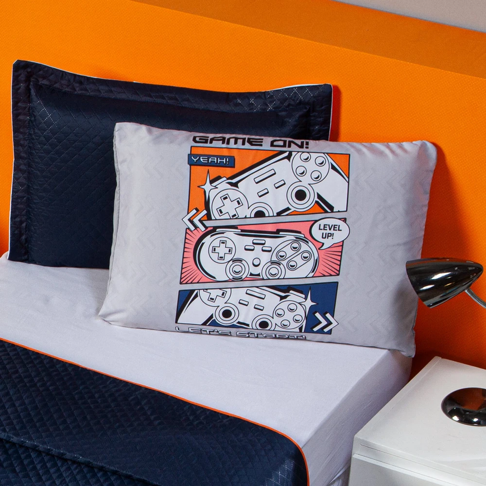 O Kit Cobre Leito Gamer Level Up é a escolha perfeita para os aficionados por jogos que desejam adicionar um toque de estilo e personalidade ao seu quarto. Este conjunto é dupla face, oferecendo versatilidade com um lado em azul marinho elegante e outro em preto sóbrio, permitindo que você escolha o visual que mais combina com seu gosto. O kit inclui uma fronha estampada e uma matelada que complementa o design, adicionando um toque de criatividade ao conjunto. Especificamente projetado para camas de solteiro, este conjunto é a maneira ideal de transformar o seu quarto em um ambiente acolhedor com elementos inspirados na cultura gamer. Perfeito para aqueles que buscam uma decoração moderna e autêntica que reflita sua paixão pelos jogos e a busca constante por evoluir e alcançar novos níveis. Confira!