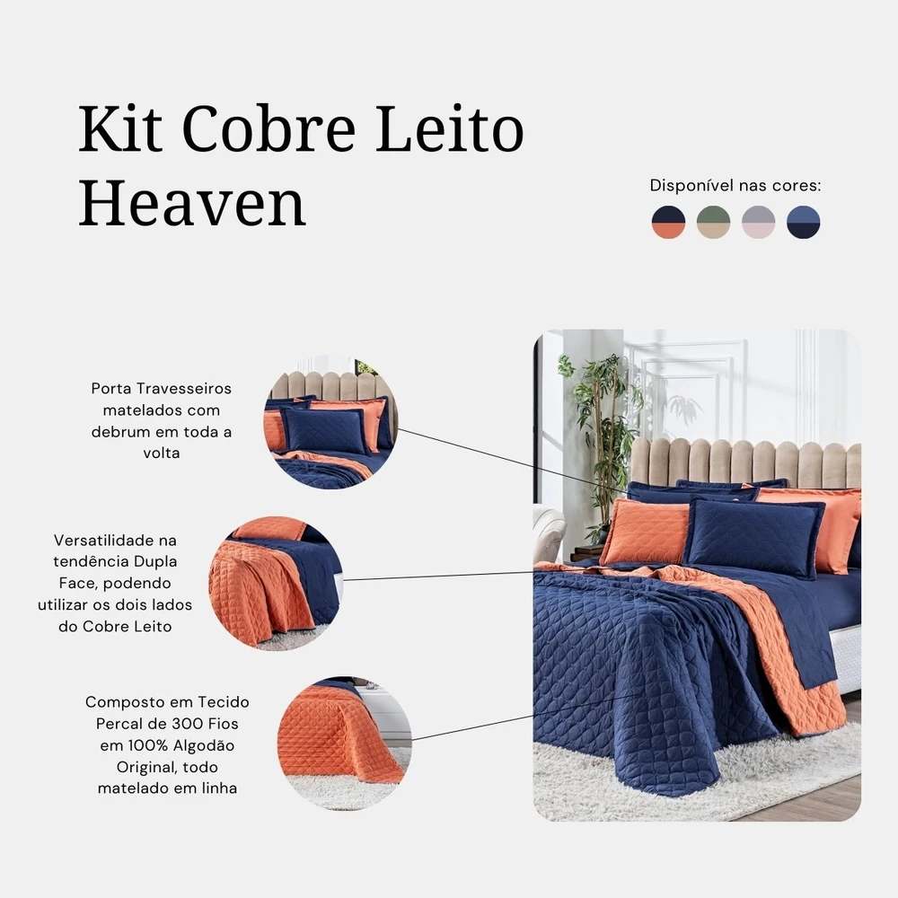Apresentando o Kit Cobre Leito Heaven Dupla Face, uma adição celestial para o seu quarto! Este conjunto de alta qualidade não só adiciona uma dose de elegância à sua decoração, mas também oferece conforto incomparável para uma noite de sono relaxante. Composto por duas peças essenciais: um cobre leito e uma fronha, este kit é a definição de luxo acessível. O cobre leito é matelado em linha em tecido percal de 300 fios, garantindo durabilidade excepcional e uma sensação suave ao toque, enquanto a fronha complementar adiciona um toque final de sofisticação. O design dupla face oferece versatilidade, permitindo que você alterne entre duas estéticas distintas com facilidade, adaptando-se às suas preferências de decoração. Seja para adicionar um toque de cor vibrante ou para optar por uma aparência mais sutil, este conjunto proporciona opções para todos os gostos. Além disso, o material 100% algodão original proporciona respirabilidade e conforto durante todas as estações do ano, mantendo-o fresco no verão e aconchegante no inverno. Este conjunto é perfeito para dormitórios, quartos de hóspedes ou qualquer espaço onde o conforto e o estilo são essenciais. Ele também faz um presente maravilhoso para amigos e familiares que apreciam o luxo e a qualidade. Eleve o visual e o conforto do seu quarto com o Kit Cobre Leito Heaven. Experimente o luxo inigualável e transforme suas noites de sono em experiências verdadeiramente divinas! Confira!
