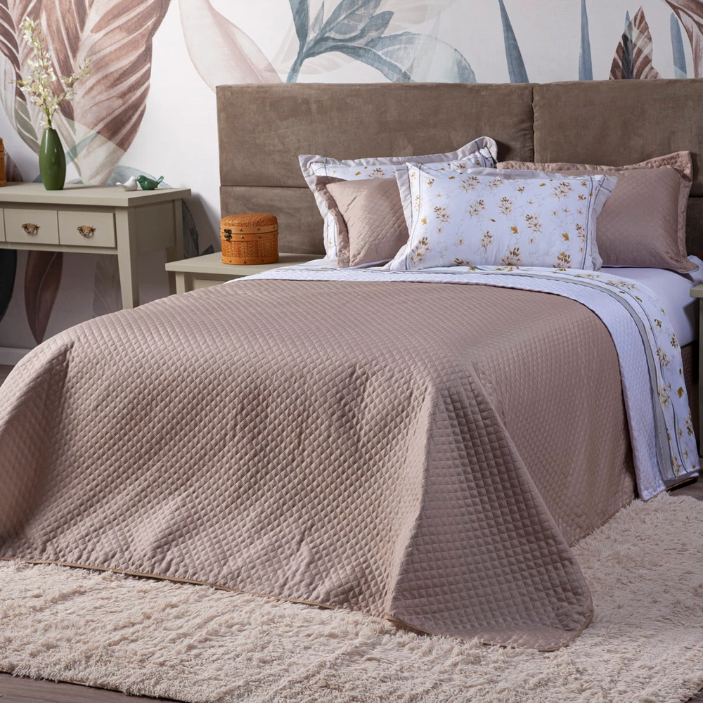 Confeccionado em tecido Microfibra 100% poliéster, a nova Coleção Maya vem trazendo um toque macio, com portas travesseiros matelados em acabamento debrum, o cobre leito com enchimento em manta dupla face, permitindo o uso dos dois lados (Caqui e Branco) com lindos detalhes nas fronhas estampadas e na vira de lençol em floral, tudo para combinar com a sua decoração! Produzido num rigoroso controle de qualidade, dando um toque de requinte para o ambiente. Confira!