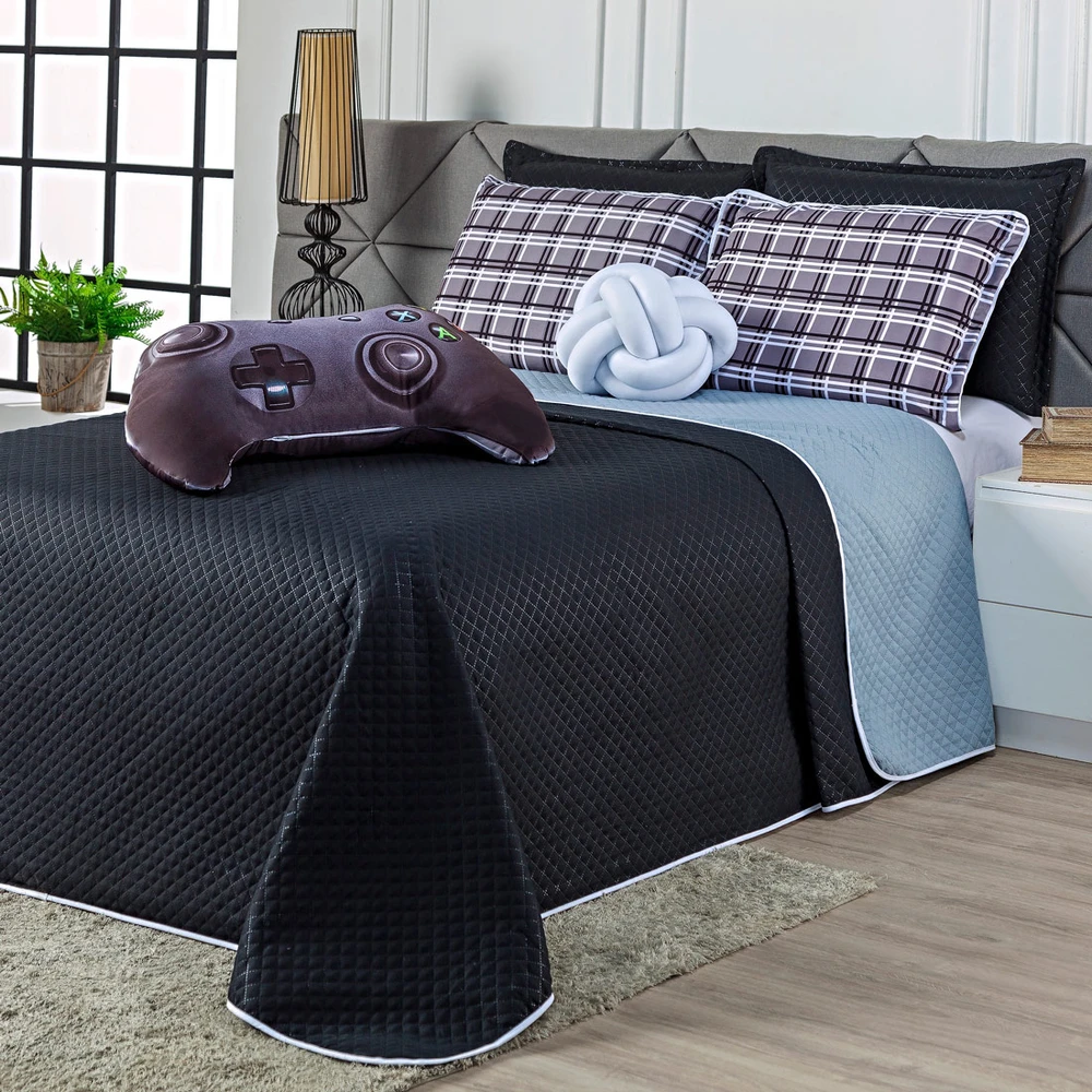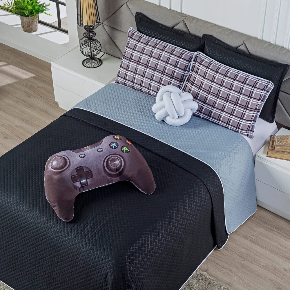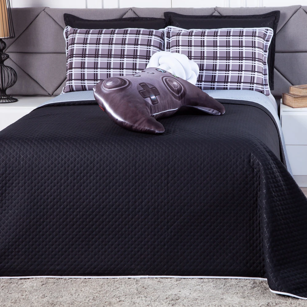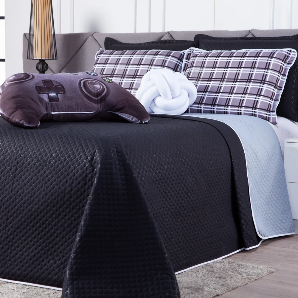A Nova Coleção Infanto-Juvenil 2021 em Microfibra tem um toque suave e macio. O tecido caracteriza-se por ser muito leve, confortável, sedoso, com secagem rápida e ótimo caimento. Vem trazendo estilo para a decoração de seu quarto na nova tendência Dupla Face, podendo utilizar as 2 cores do cobre leito! Ficará de ótimo bom gosto e elegância. Acompanhando também uma almofadinha no formato de controle e uma de nó super moderna! Tudo para combinar com o seu Kit. Confira!