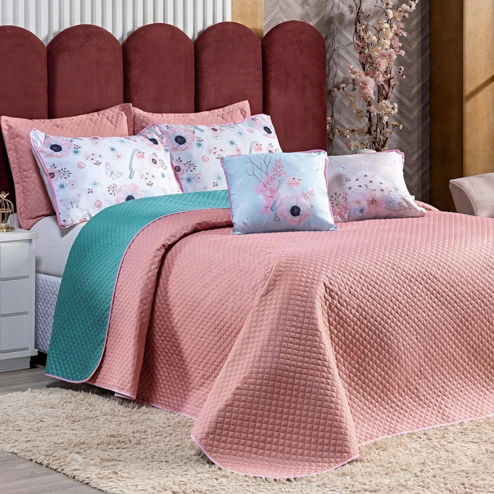 Apresentamos o encantador Kit Cobre Leito Pássaros, uma adição deslumbrante para transformar o seu quarto em um santuário de serenidade e estilo. Composto por sete peças meticulosamente selecionadas, este conjunto oferece uma fusão perfeita de elegância e conforto. O cobre leito, confeccionado em tecido de qualidade, proporciona durabilidade excepcional e uma sensação suave ao toque, enquanto sua versatilidade dupla face permite alternar entre os tons suaves de rosê e o vibrante verde tiffany, permitindo a personalização de acordo com seu gosto e estilo. As capas de almofadas inclusas complementam o conjunto, acrescentando um toque final de sofisticação e conforto com traços e desenhos de aves e flores em cores suaves. Ideal para quem busca criar um ambiente acolhedor e elegante. Renove seu espaço com este kit e desfrute de noites de sono tranquilas e cheias de estilo. Confira!