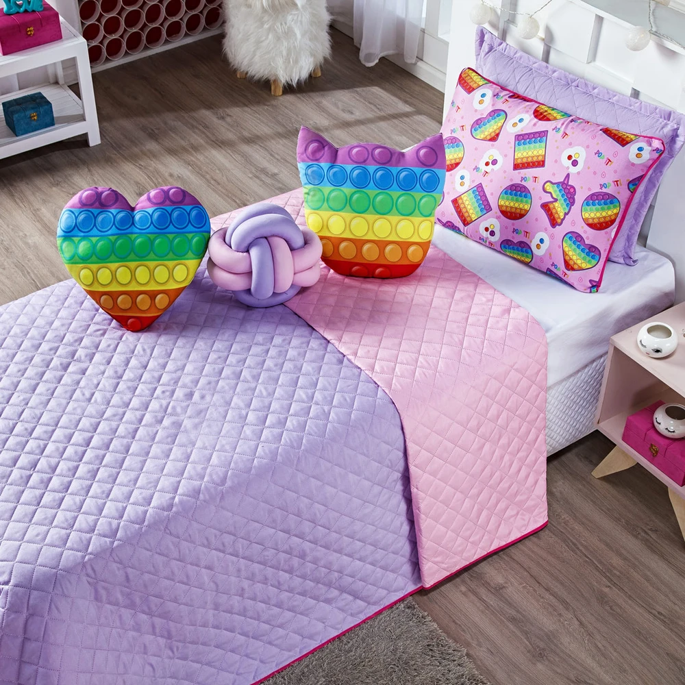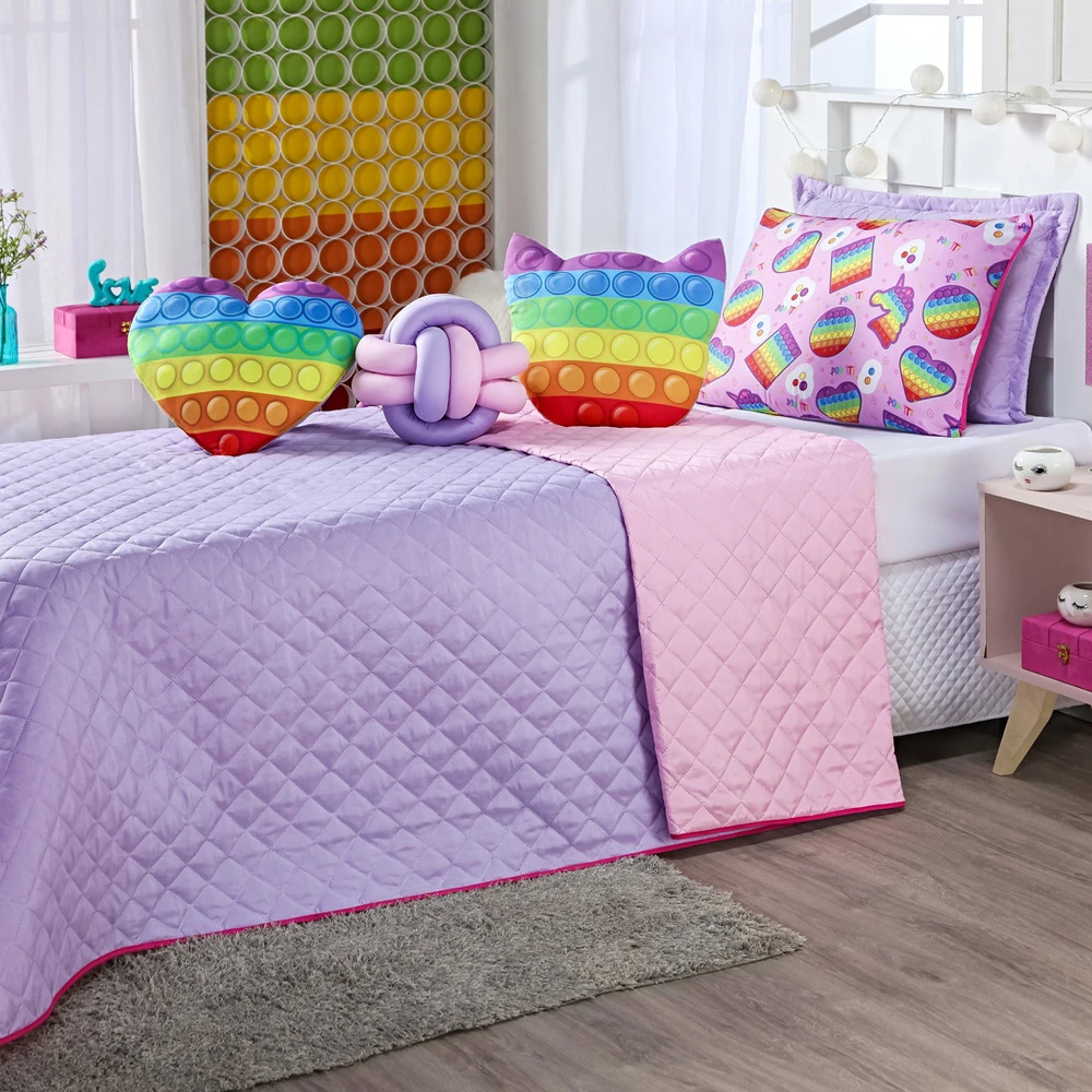 A Nova Coleção Infanto-Juvenil 2021 em Microfibra tem um toque suave e macio. O tecido caracteriza-se por ser muito leve, confortável, sedoso, com secagem rápida e ótimo caimento. Vem trazendo estilo para a decoração de seu quarto na nova tendência Dupla Face, podendo utilizar as 2 cores do cobre leito! Ficará de ótimo bom gosto e elegância. Acompanhando também as almofadinhas estampadas temáticas e uma de nó super moderna! Tudo para combinar com a decoração. Confira!