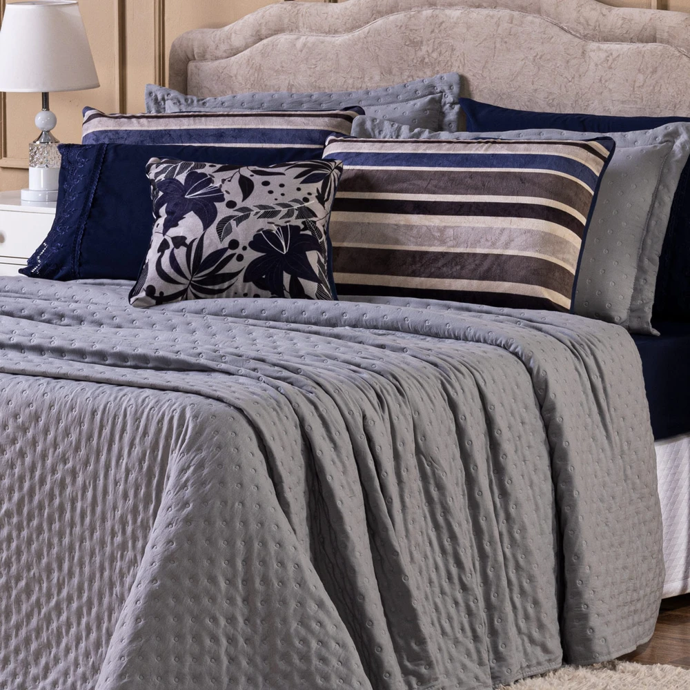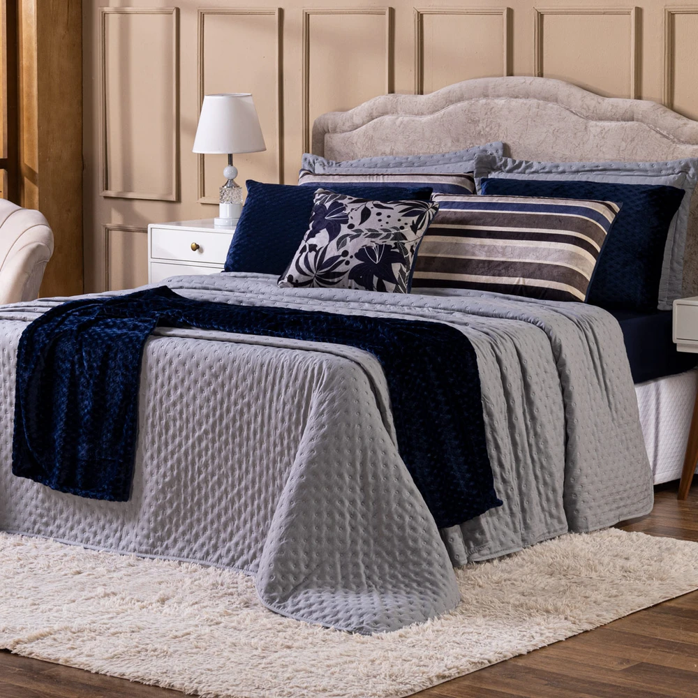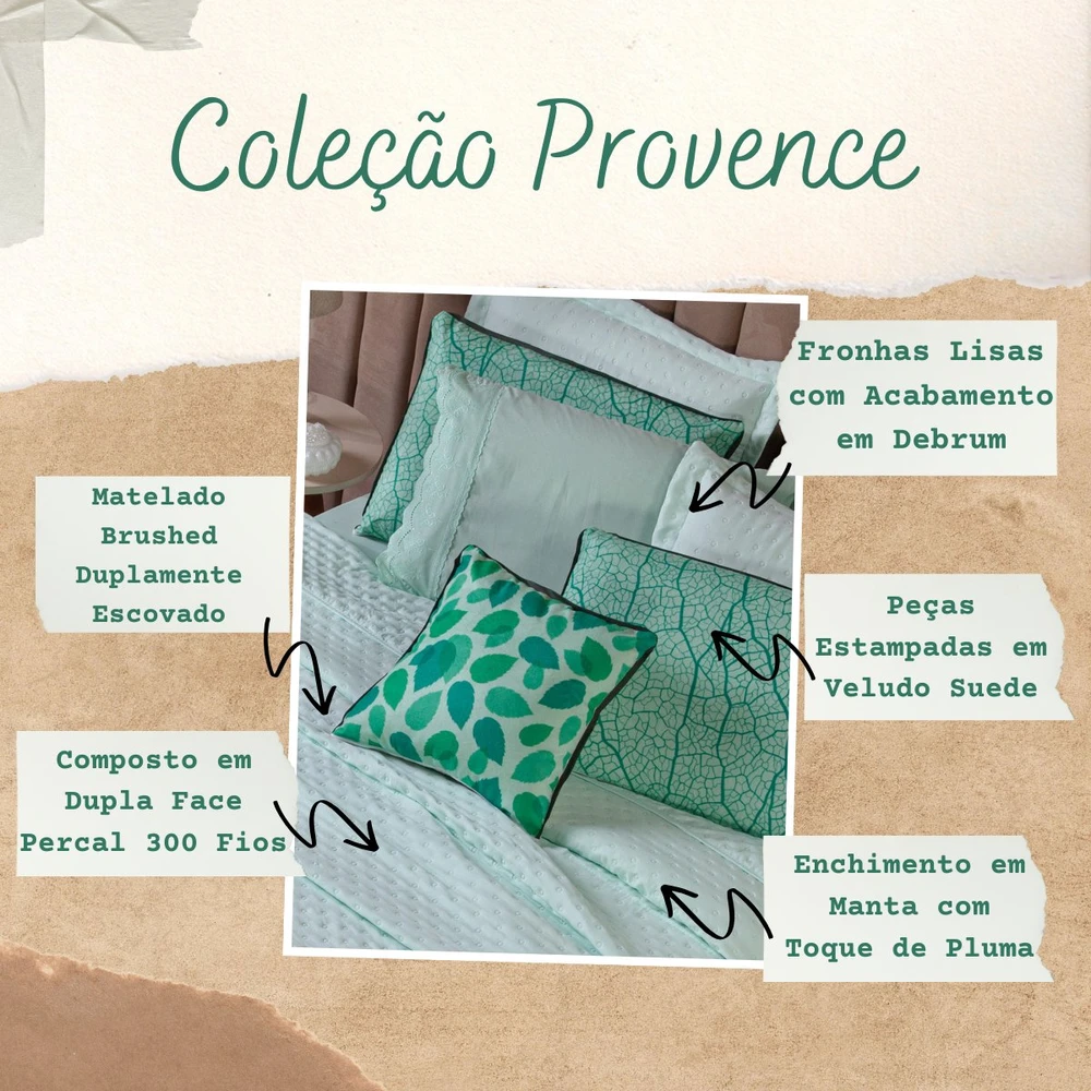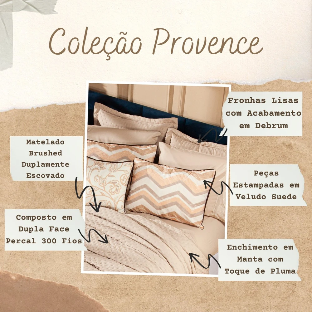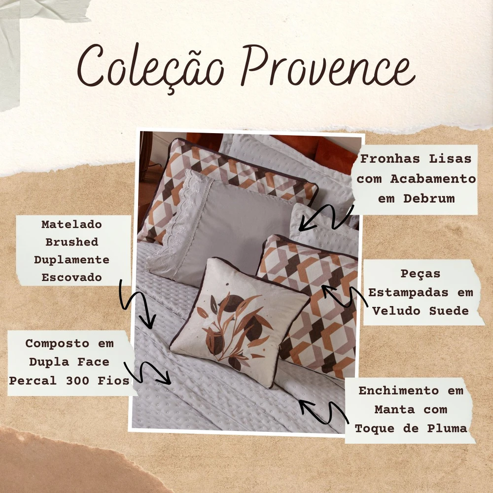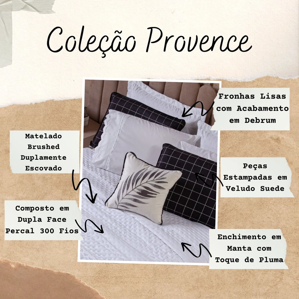 Transforme o seu quarto em um verdadeiro refúgio de conforto e sofisticação com o Kit Cobre Leito Provence. Confeccionado em Percal 300 fios, o tecido proporciona um toque suave e agradável, com o exclusivo enchimento em toque de pluma, que garante uma sensação de aconchego incomparável, além disso o tecido contém a tecnologia Brushed duplamente escovado, trazendo ainda mais maciez ao toque. Este conjunto, que inclui 6 peças, oferece uma combinação de praticidade e elegância, com o design matelado que traz um visual clássico e refinado em um toque aveludado. O Kit Cobre Leito é duplo face, permitindo que você alterne entre os dois lados, tornando-o prático à decoração do seu ambiente. Além disso, a capa de almofada e as fronhas estampadas em veludo suede completam o conjunto com uma estampa delicada, que adiciona luxo e textura ao seu espaço. Ideal para quem busca estilo e conforto em uma única solução, o Kit Cobre Leito Provence é perfeito para camas Casal Padrão e oferece qualidade superior com o acabamento impecável que você merece. Confira!
