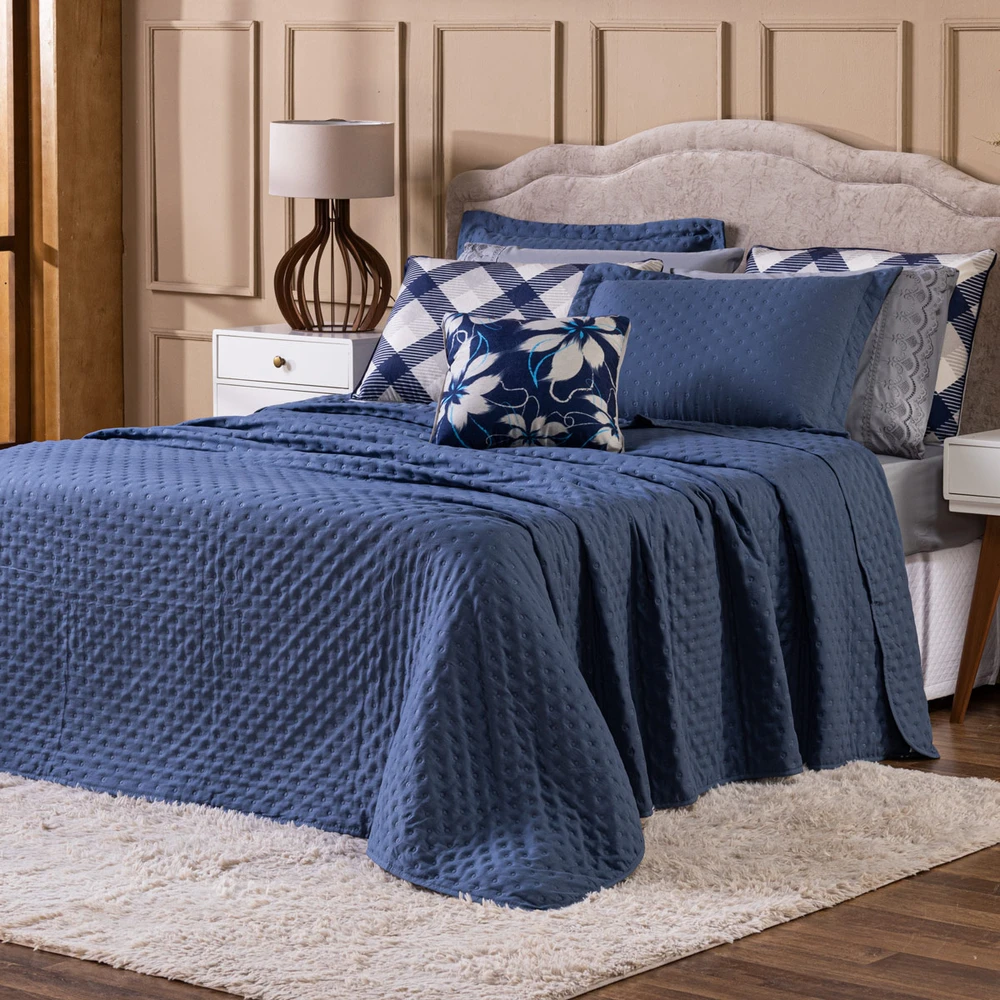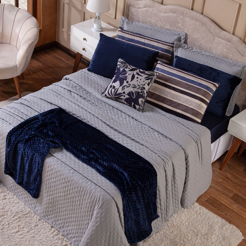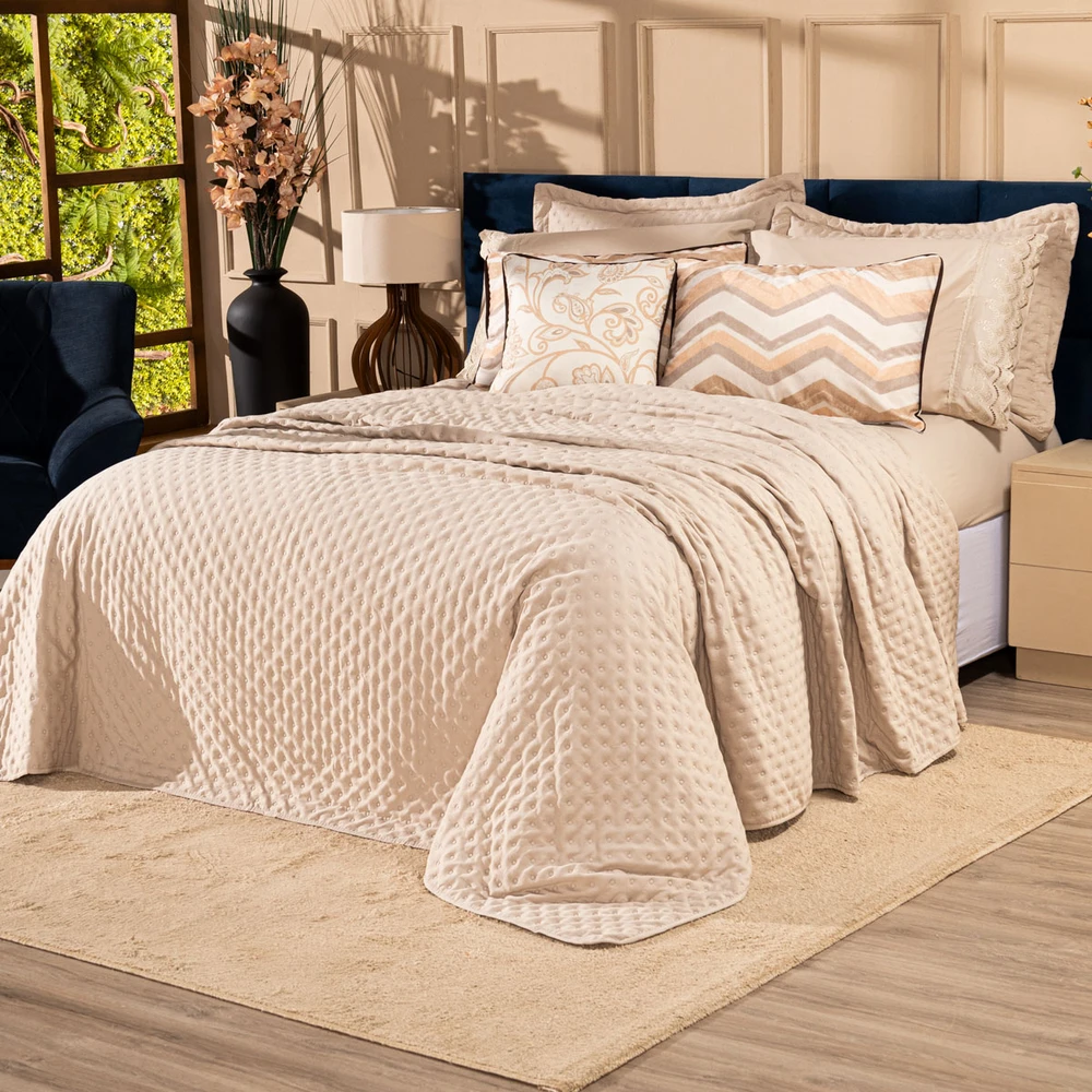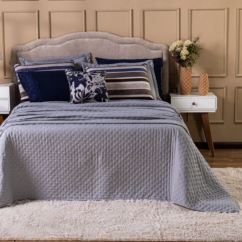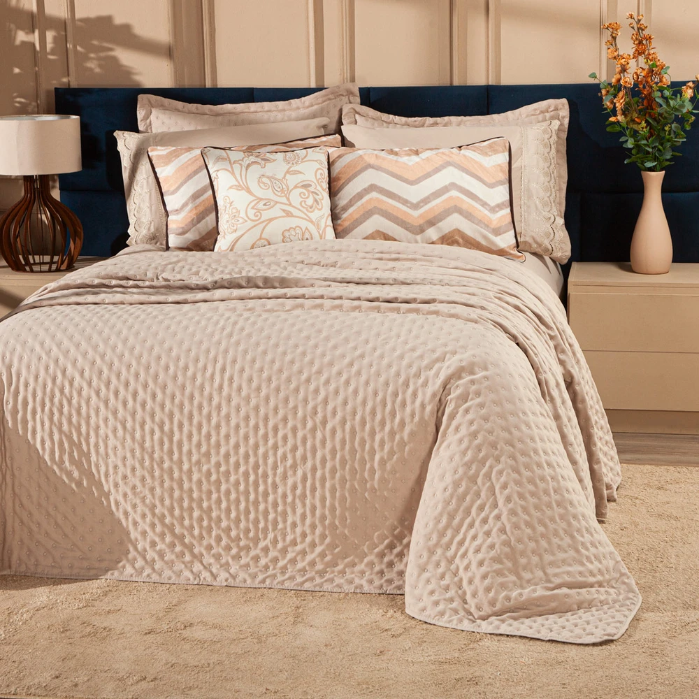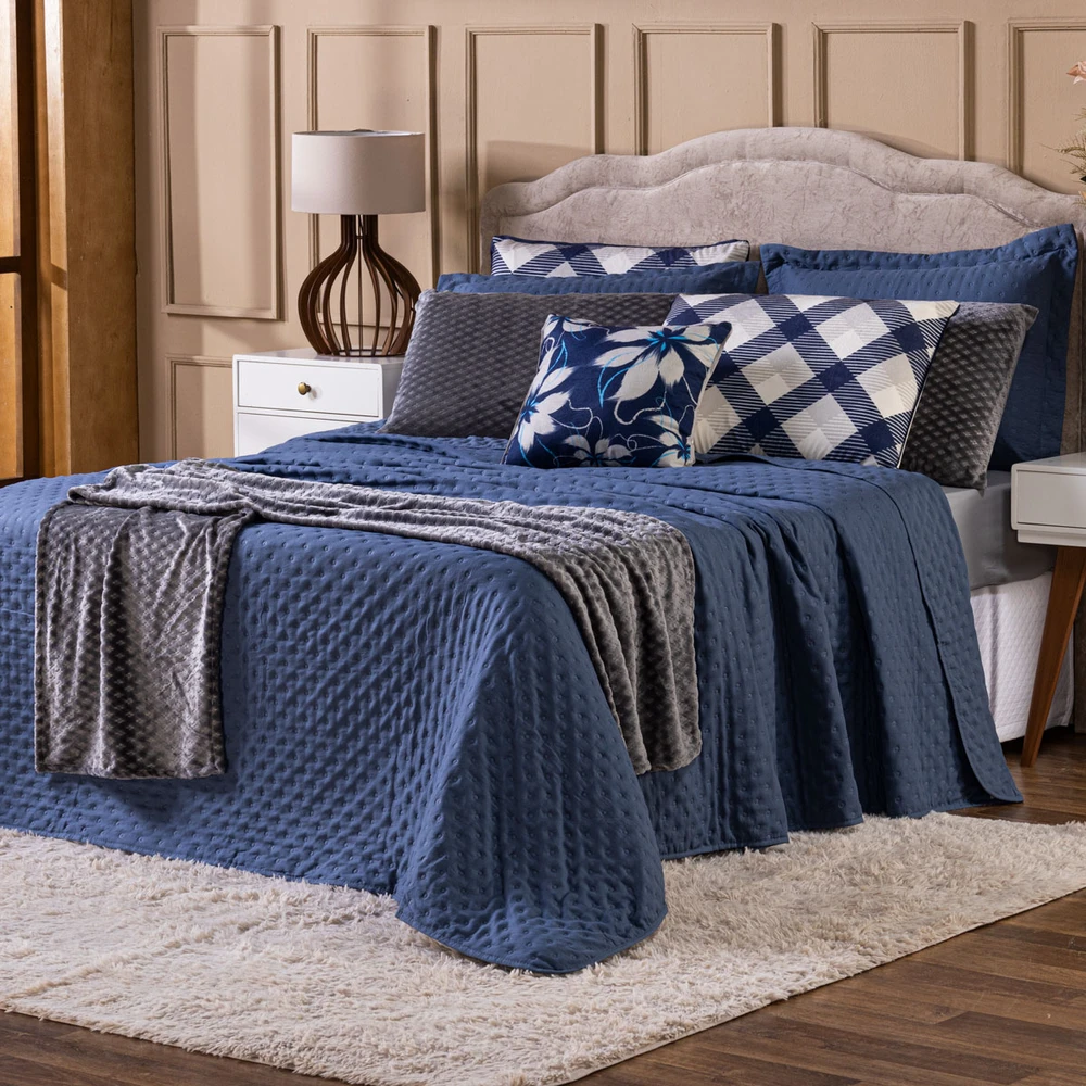 Transforme o seu quarto em um verdadeiro refúgio de conforto e sofisticação com o Kit Cobre Leito Provence. Confeccionado em Percal 300 fios, o tecido proporciona um toque suave e agradável, com o exclusivo enchimento em toque de pluma, que garante uma sensação de aconchego incomparável, além disso o tecido contém a tecnologia Brushed duplamente escovado, trazendo ainda mais maciez ao toque. Este conjunto, que inclui 6 peças, oferece uma combinação de praticidade e elegância, com o design matelado que traz um visual clássico e refinado em um toque aveludado. O Kit Cobre Leito é duplo face, permitindo que você alterne entre os dois lados, tornando-o prático à decoração do seu ambiente. Além disso, a capa de almofada e as fronhas estampadas em veludo suede completam o conjunto com uma estampa delicada, que adiciona luxo e textura ao seu espaço. Ideal para quem busca estilo e conforto em uma única solução, o Kit Cobre Leito Provence é perfeito para camas Casal Padrão e oferece qualidade superior com o acabamento impecável que você merece. Confira!