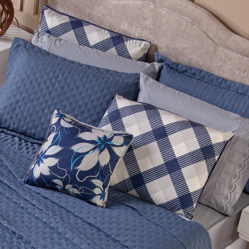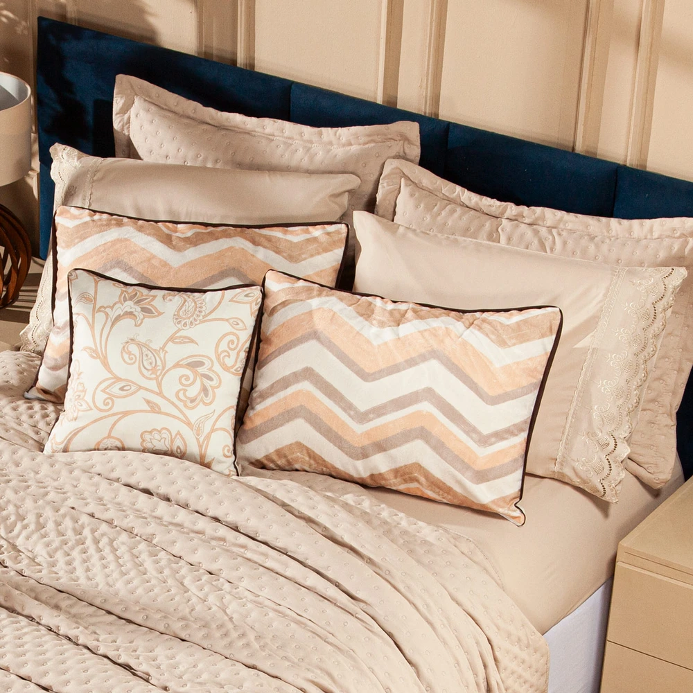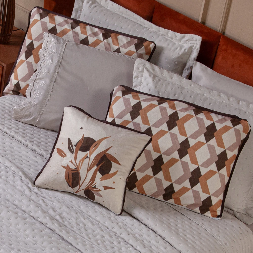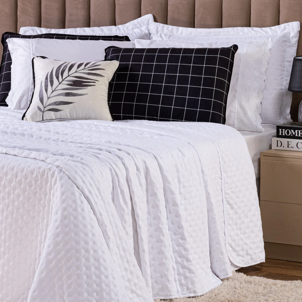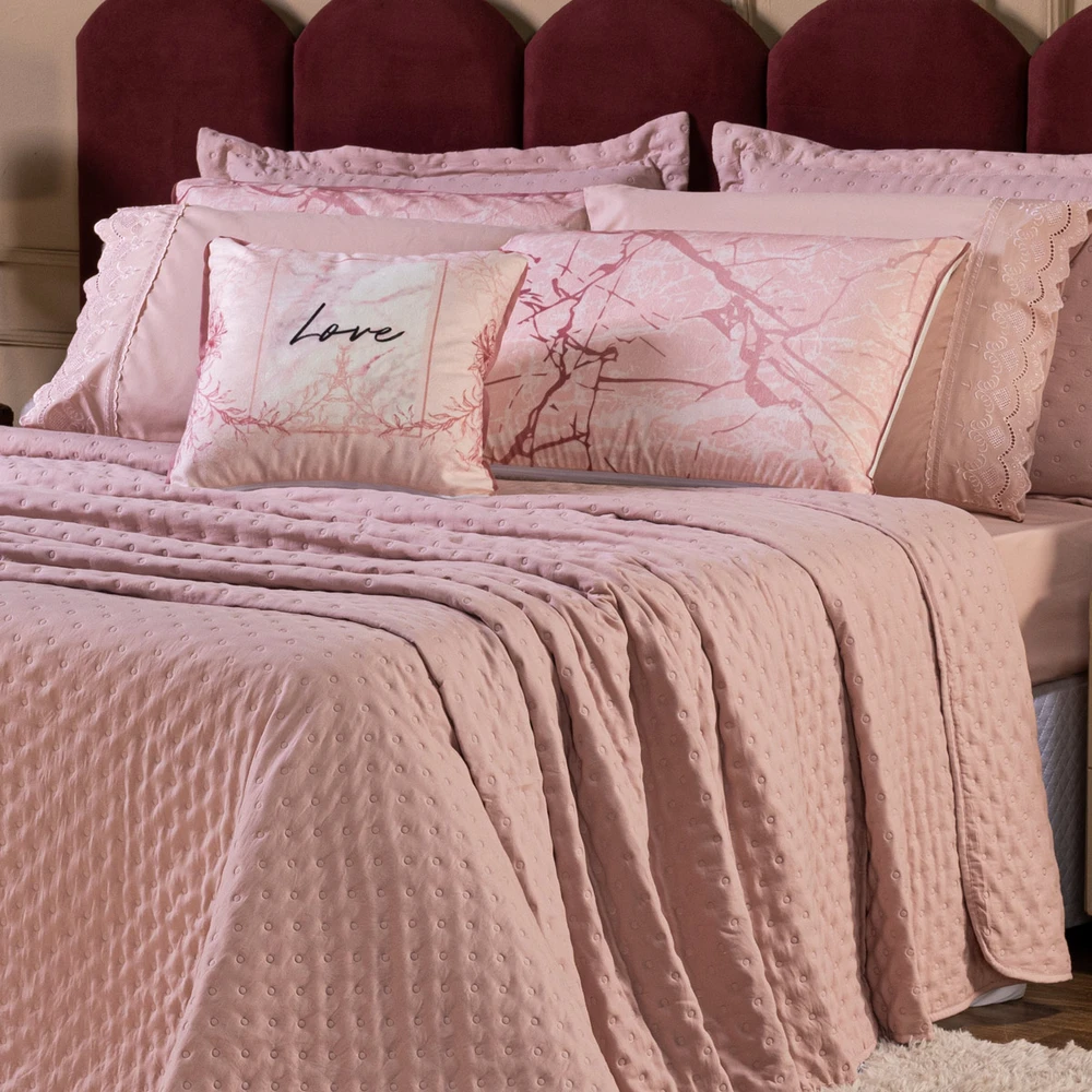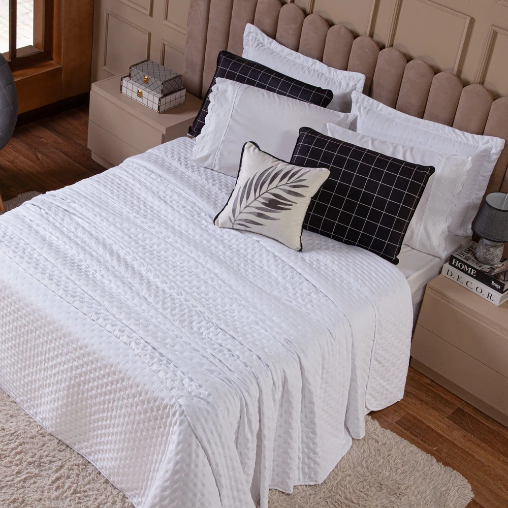 Transforme o seu quarto em um verdadeiro refúgio de conforto e sofisticação com o Kit Cobre Leito Provence. Confeccionado em Percal 300 fios, o tecido proporciona um toque suave e agradável, com o exclusivo enchimento em toque de pluma, que garante uma sensação de aconchego incomparável, além disso o tecido contém a tecnologia Brushed duplamente escovado, trazendo ainda mais maciez ao toque. Este conjunto, que inclui 6 peças, oferece uma combinação de praticidade e elegância, com o design matelado que traz um visual clássico e refinado em um toque aveludado. O Kit Cobre Leito é duplo face, permitindo que você alterne entre os dois lados, tornando-o prático à decoração do seu ambiente. Além disso, a capa de almofada e as fronhas estampadas em veludo suede completam o conjunto com uma estampa delicada, que adiciona luxo e textura ao seu espaço. Ideal para quem busca estilo e conforto em uma única solução, o Kit Cobre Leito Provence é perfeito para camas Casal Padrão e oferece qualidade superior com o acabamento impecável que você merece. Confira!