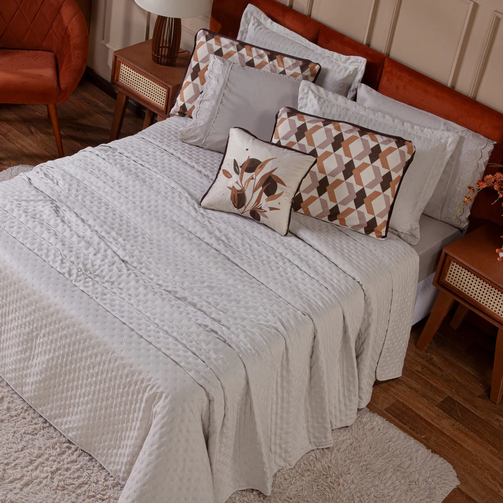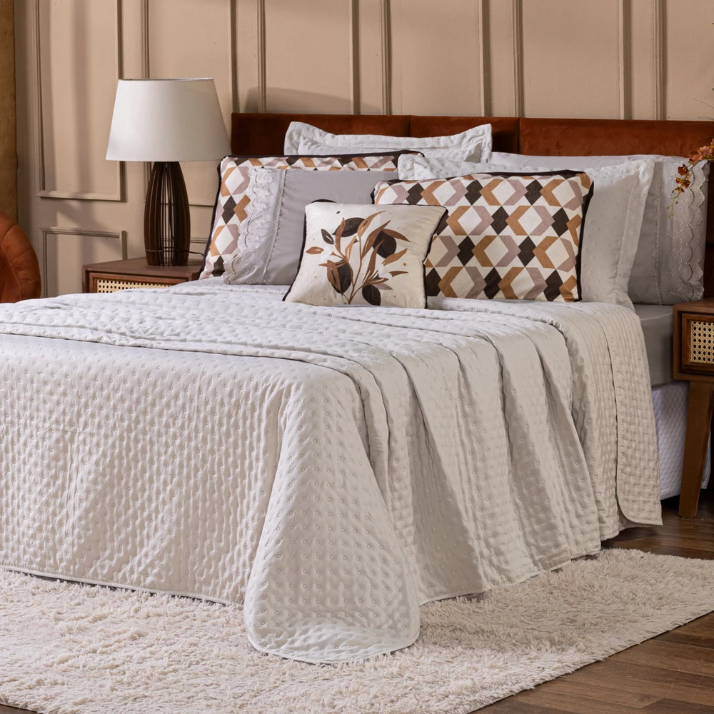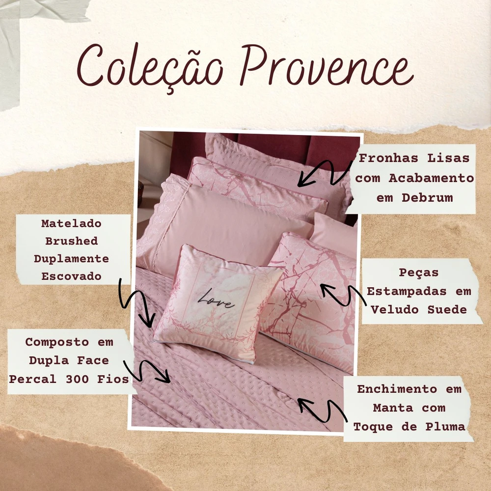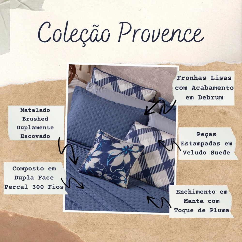 Transforme o seu quarto em um verdadeiro refúgio de conforto e sofisticação com o Kit Cobre Leito Provence. Confeccionado em Percal 300 fios, o tecido proporciona um toque suave e agradável, com o exclusivo enchimento em toque de pluma, que garante uma sensação de aconchego incomparável, além disso o tecido contém a tecnologia Brushed duplamente escovado, trazendo ainda mais maciez ao toque. Este conjunto, que inclui 6 peças, oferece uma combinação de praticidade e elegância, com o design matelado que traz um visual clássico e refinado em um toque aveludado. O Kit Cobre Leito é duplo face, permitindo que você alterne entre os dois lados, tornando-o prático à decoração do seu ambiente. Além disso, a capa de almofada e as fronhas estampadas em veludo suede completam o conjunto com uma estampa delicada, que adiciona luxo e textura ao seu espaço. Ideal para quem busca estilo e conforto em uma única solução, o Kit Cobre Leito Provence é perfeito para camas King e oferece qualidade superior com o acabamento impecável que você merece. Confira!