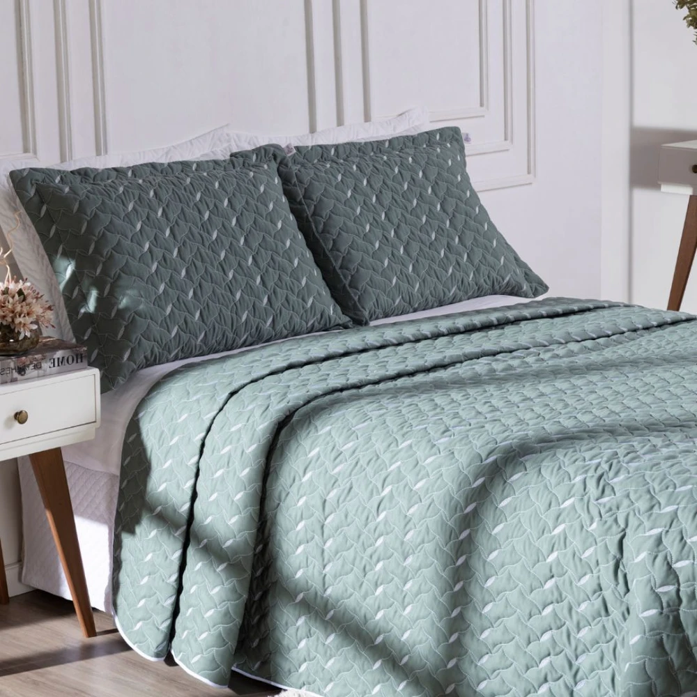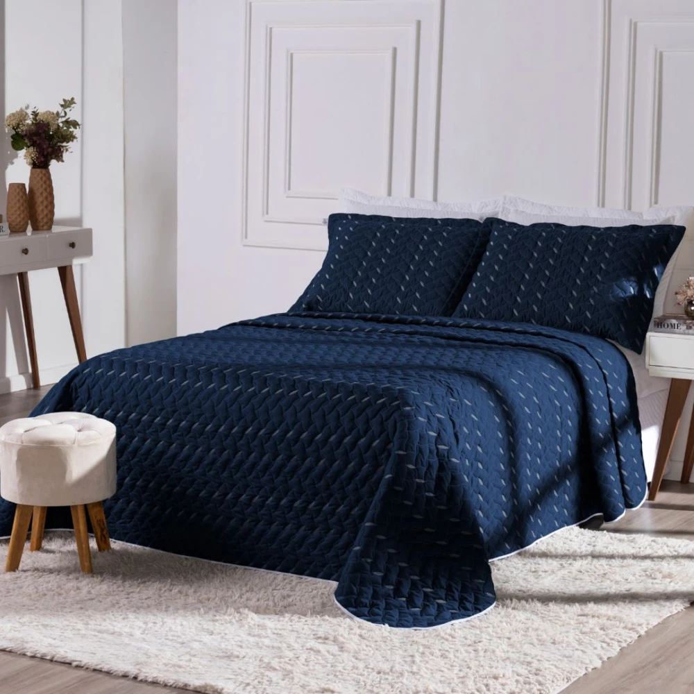 Queen (3 peças): 1 cobre-leito + 2 porta-travesseiros