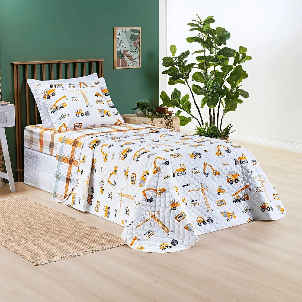 Esse lindo kit cobre leito com lençol debaixo e porta travesseiros, permitira um ambiente alegre e descontraido ao quarto da criança, super divertido!