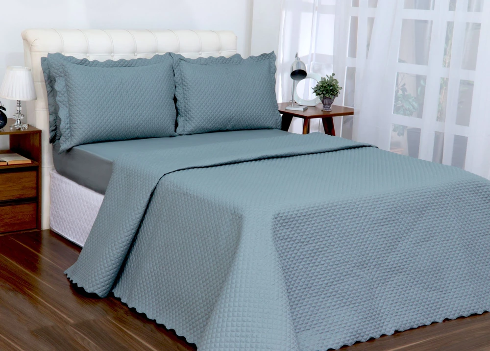 Os cobreleitos da Deccoralle são confeccionados pensando no seu bem-estar. Além de proporcionar uma sensação térmica agradável, eles são resistentes, duráveis e fáceis de lavar, facilitando a manutenção e conservação, além de transformar o seu quarto em um ambiente acolhedor e cheio de personalidade. Nossos produtos combinam qualidade, conforto e design exclusivo, garantindo noites de sono tranquilas e um visual sofisticado. Quantidade de Peças e Medidas Aproximadas (Largura x Altura):01 cobreleito 2,40 m x 2,50 m02 portas travesseiros 0,70 cm x 0,50 cm                                                                        Material e Composição:Superior: Microfibra 100% poliésterManta: 100% poliésterInferior: 100% polipropileno Informações Específicas: Ótima qualidade e acabamentoIndicado para Cama Casal QueenMatelasse Ultrassonico