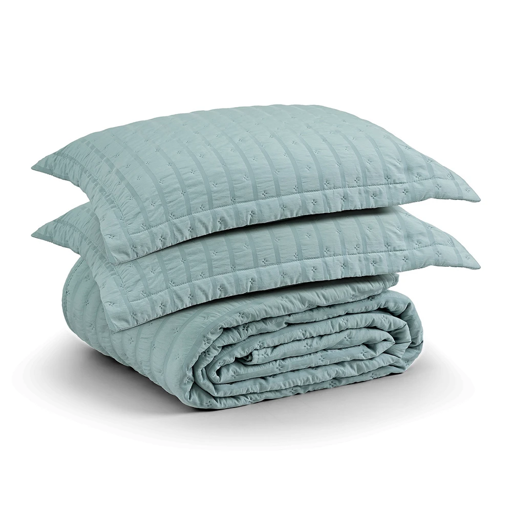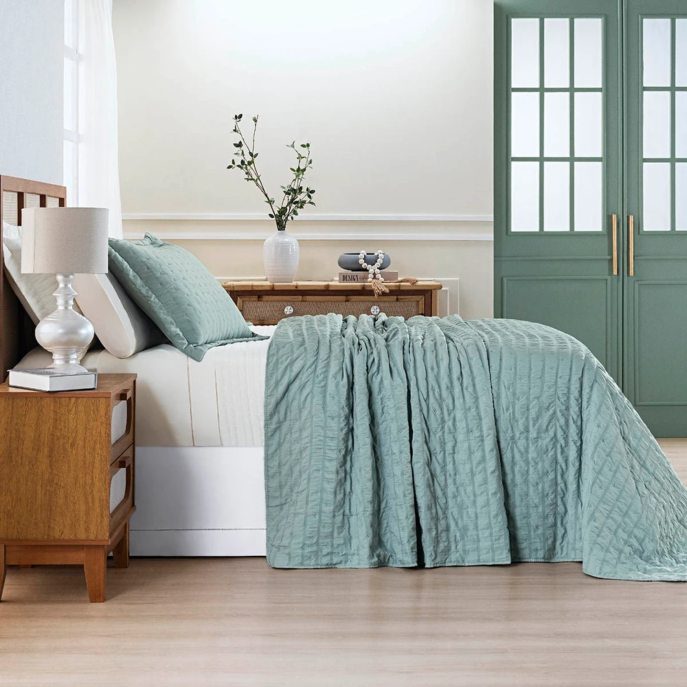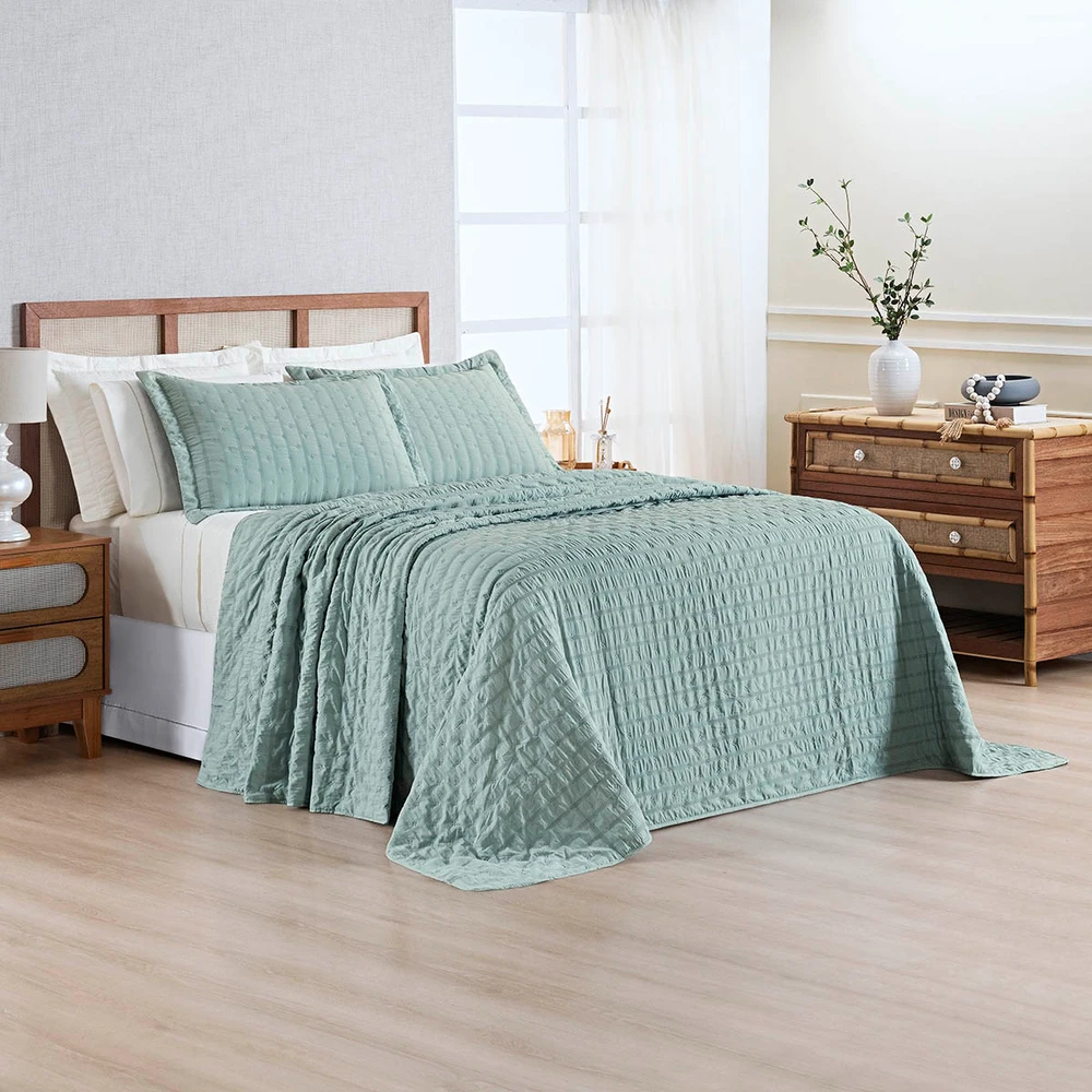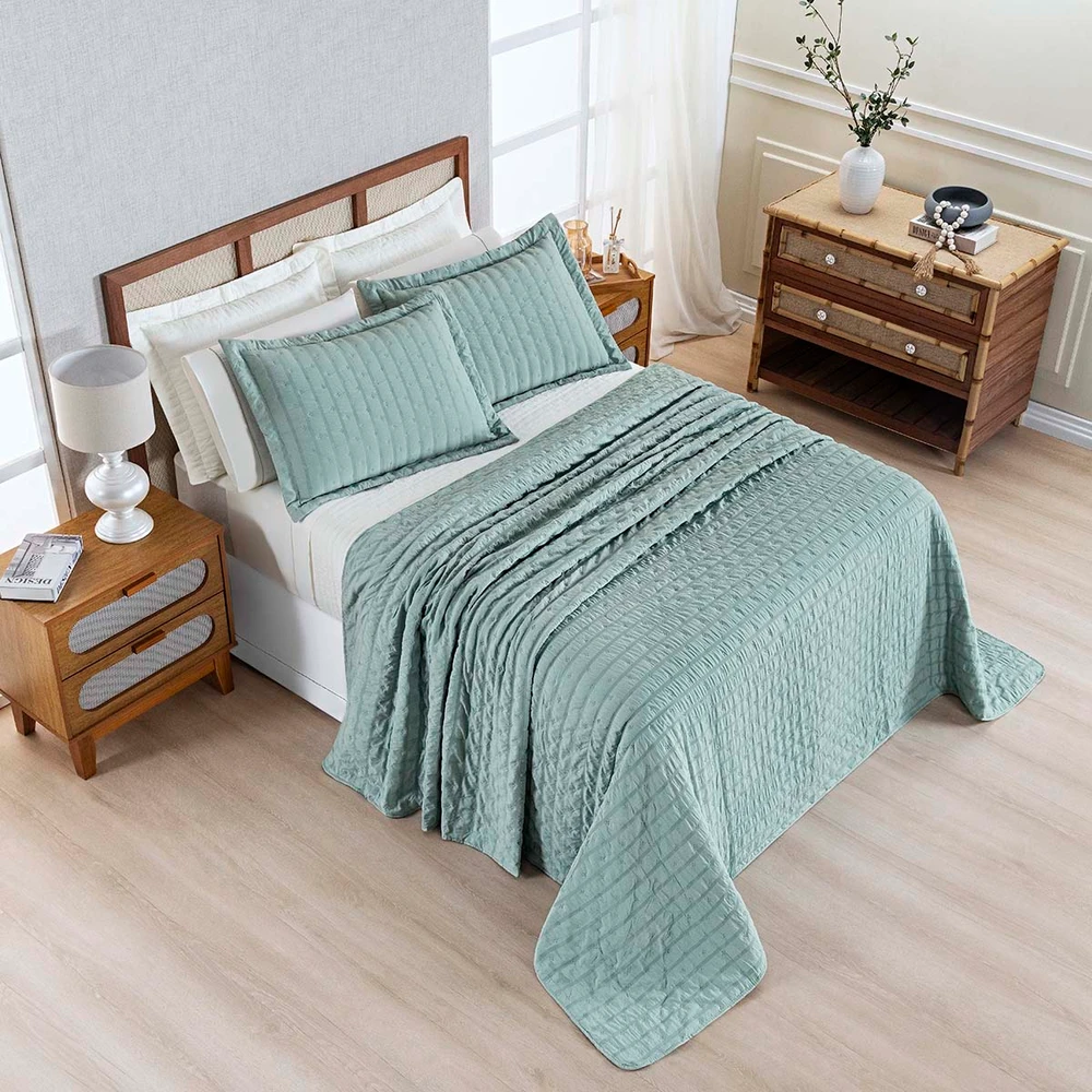 Kit Colcha Cobre Leito Plissê Casal Seersucker Premium 3 Peças Maciez e Leveza com Textura 3D Verde Essencial