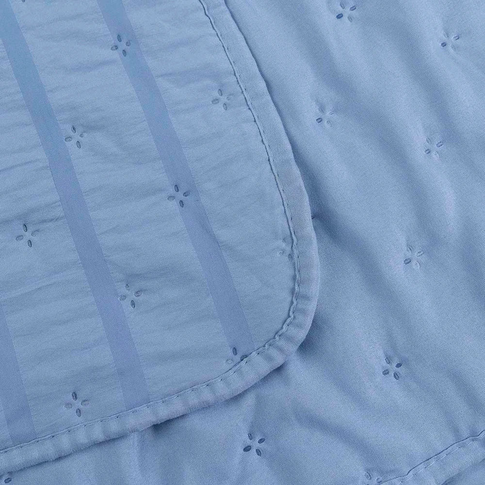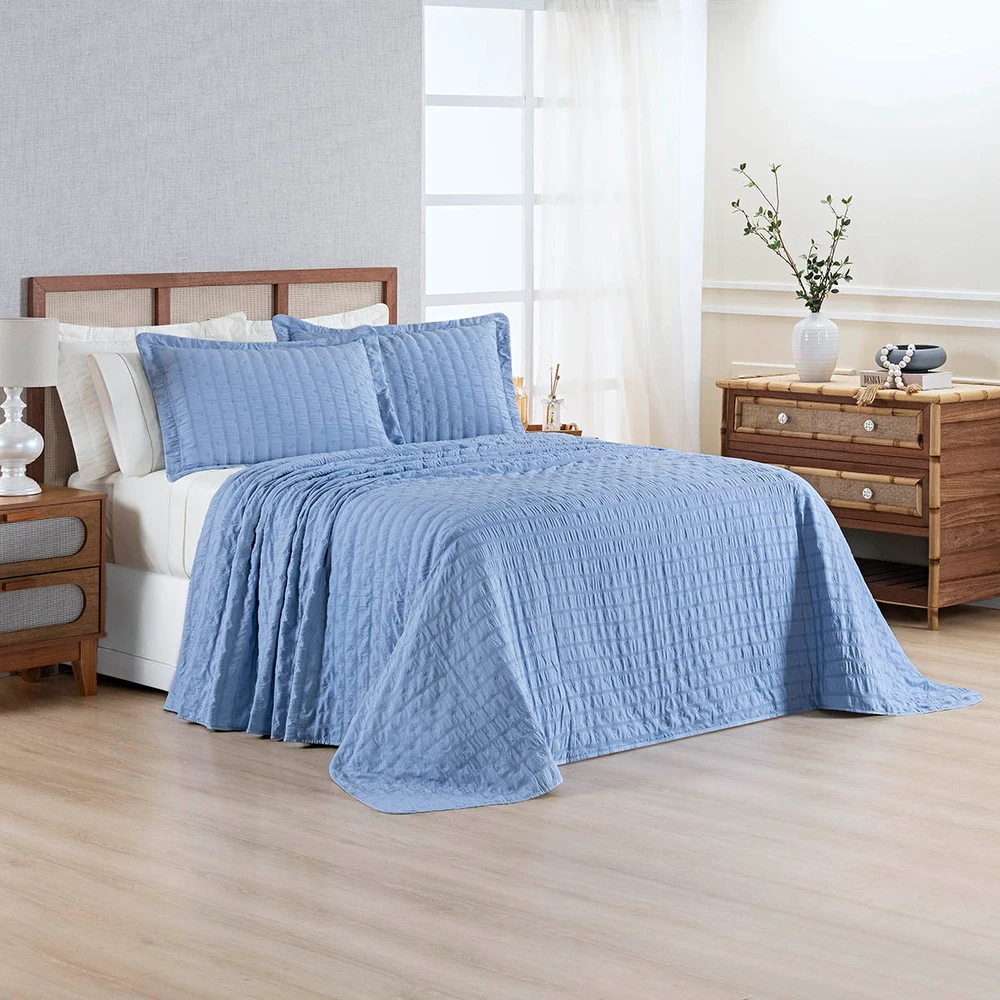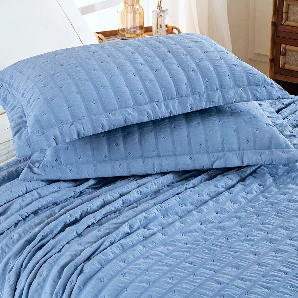 Kit Colcha Cobre Leito Plissê Queen Seersucker Premium 3 Peças Maciez e Leveza com Textura 3D Azul Mineral