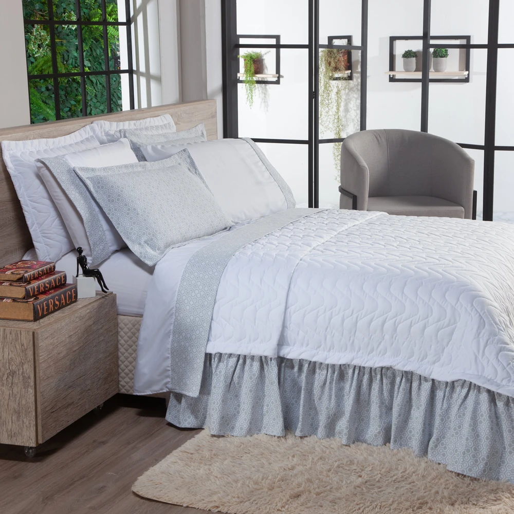 Babado e Porta Travesseiro Estampado: Jacquard 58% Algodão / 42% Poliéster
