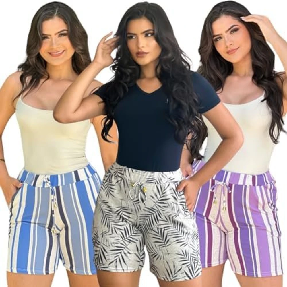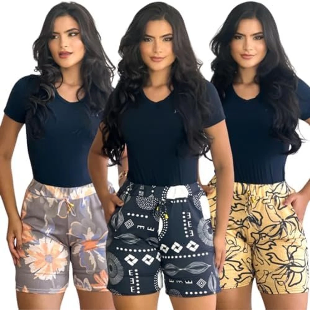 KIT COM 3 SHORTS FEMININO MALHA CREPE ESPORTIVO CASUAL COM BOLSOS