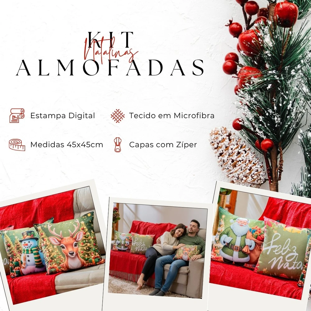 Este encantador kit de capas de almofadas estampadas com temática natalina é a maneira perfeita de dar um toque festivo à sua decoração de fim de ano. Cada capa possui adoráveis estampas e símbolos natalinos com lindos desenhos que vão iluminar sua casa durante a temporada de Natal. Feitas em estampa digital com tecido de alta qualidade em Microfibra, essas capas têm o tamanho ideal de 45cm x 45cm, proporcionando conforto e elegância à sua decoração. Adicione um toque mágico de Natal à sua sala de estar, quarto ou qualquer espaço de sua preferência com este kit. Celebre o espírito natalino e crie um ambiente acolhedor, abençoado e festivo para compartilhar com sua família e amigos. Confira!