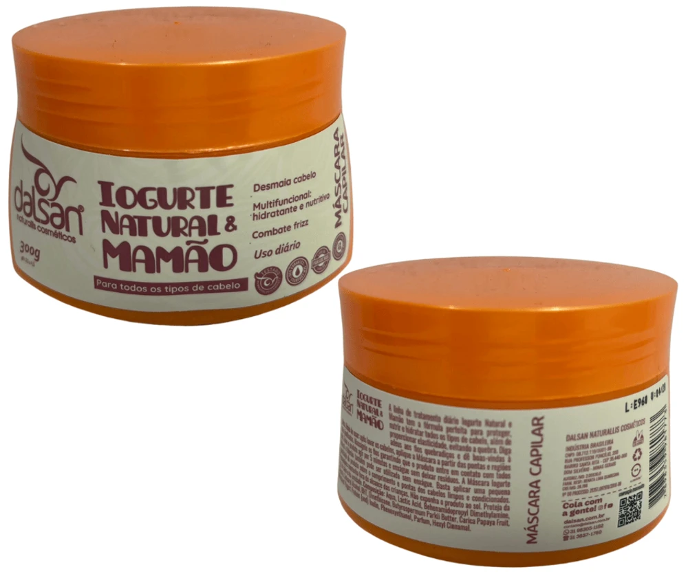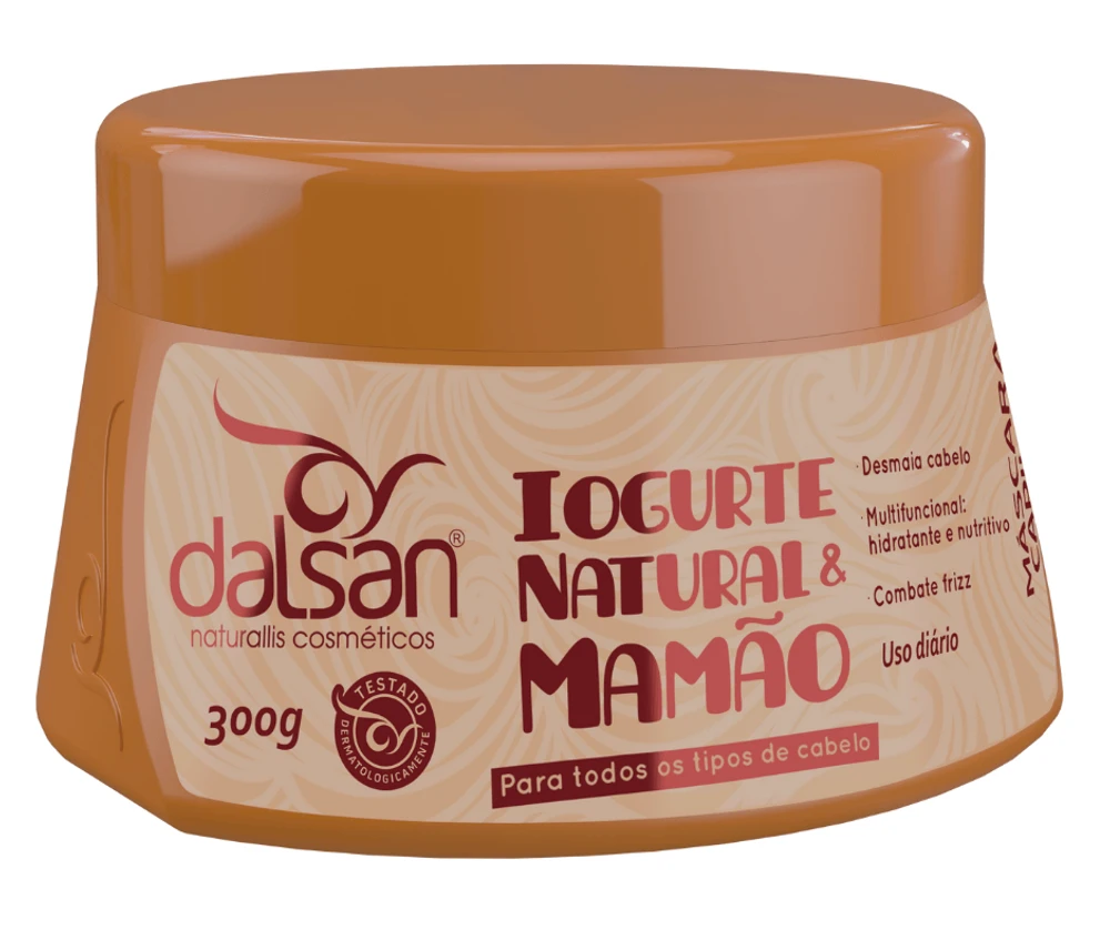 Máscara Hidratante 300g pH: 3,5 a 4,5 Formulação inovadora, com tecnologia especializada para hidratar profundamente e instantaneamente, contém ativos naturais que se completam, o Mamão é excelente hidratante de todos os tipos de tecidos, inclusive cabelos e o Iogurte Natural é altamente nutritivo. Tratamento preventivo, devolve a saúde e prepara os fios para serem submetidos a processos químicos.