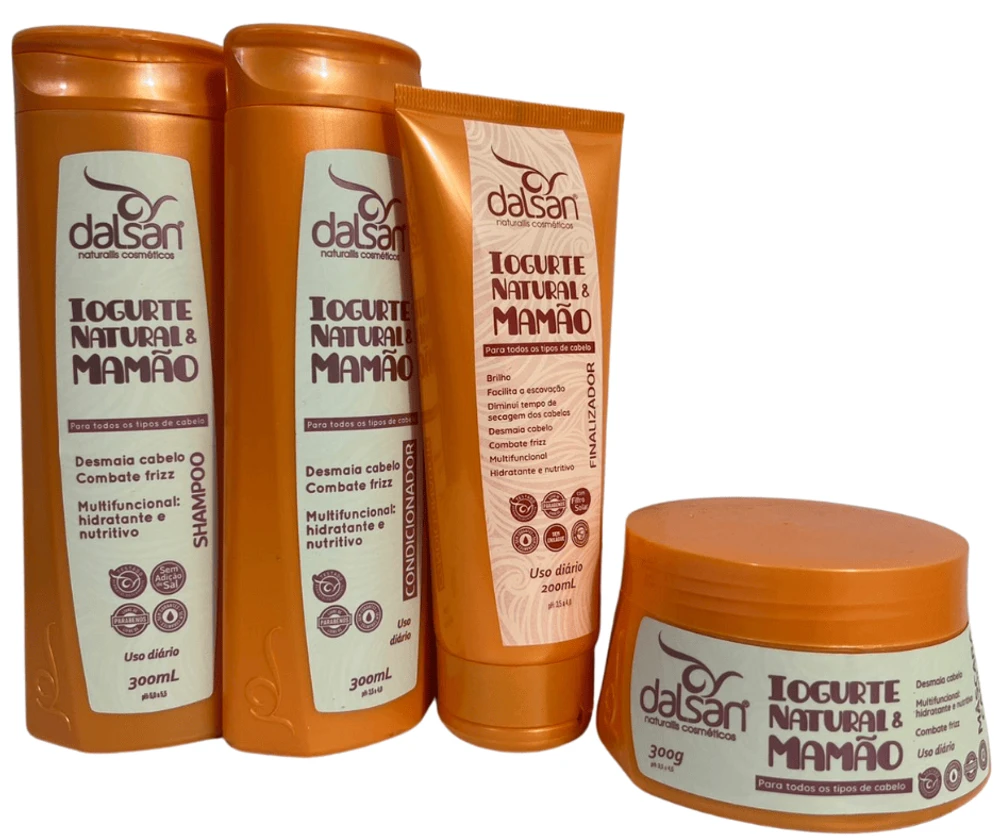 Condicionador 300ml PH: 3,5 a 4,0 Ação hidratante do Mamão e nutritiva do Iogurte Natural condicionam e deixam os fios mais macios e flexíveis.