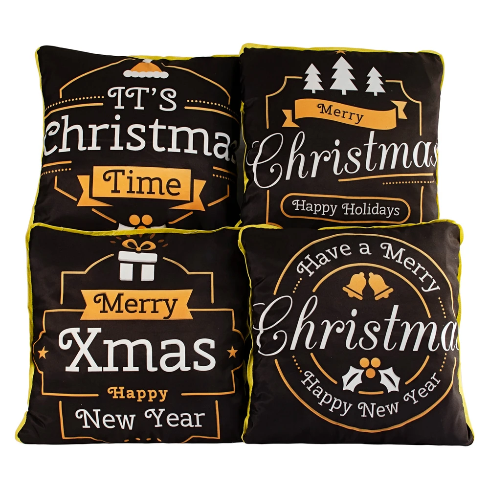 Kit de Almofadas Cheias Natalina New Year Preto 04 Peças